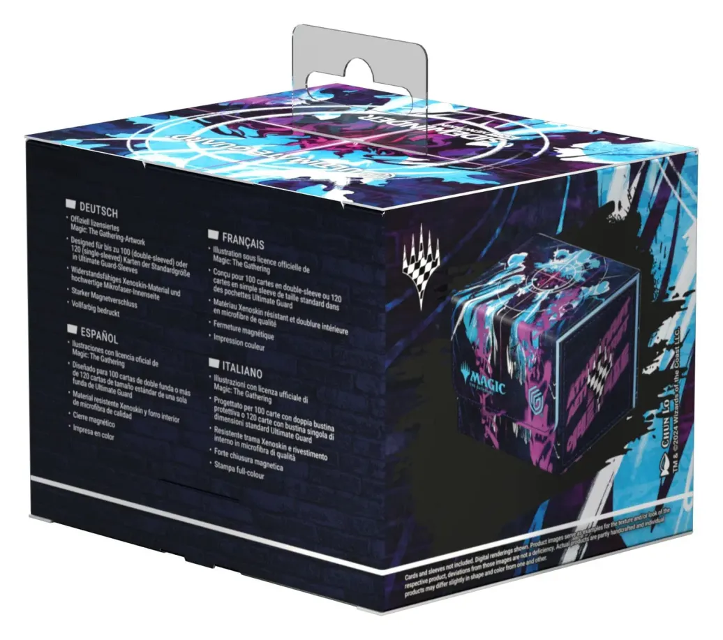 Der Sidewinder 100+ aus widerstandsfähigem Xenoskin-Material fasst bis zu 100 (double-sleeved) bzw. 120 (single-sleeved) Karten und ist perfekt als Deck-Box für Commander-Decks geeignet. Vollfarbig bedruckt mit Artworks aus Magic: The Gatherings Edition Aetherdrift, sind Ultimate Guards Sidewinder-Deck-Boxen mit ihrem starken Magnetverschluss und der schonenden Mikrofaser-Innenseite der perfekte und sichere Aufbewahrungsort für Decks und individuelle Sammelkarten.
