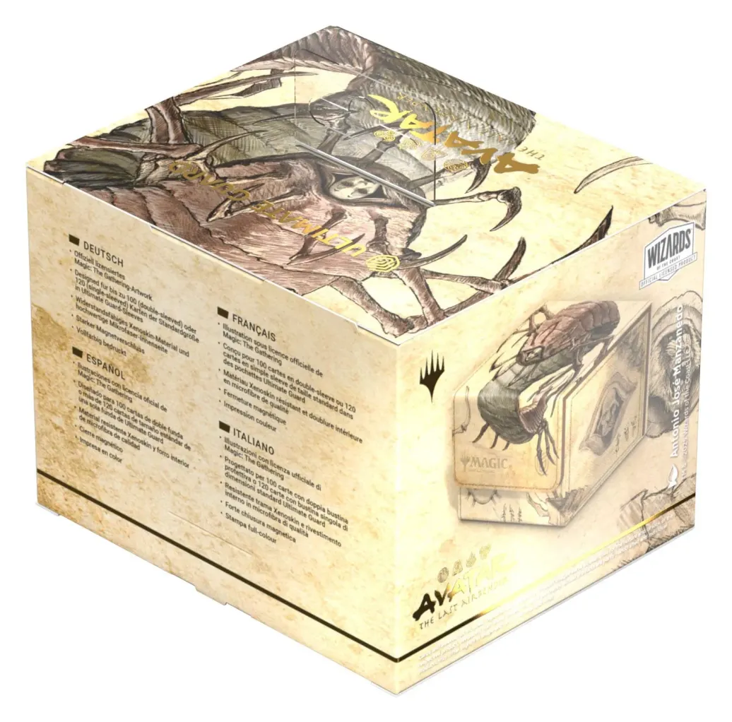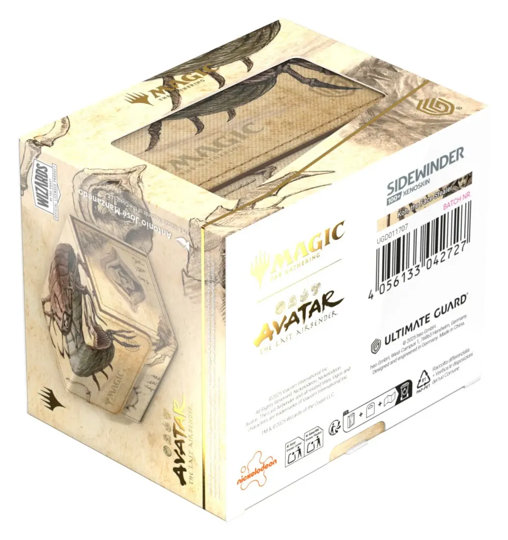 Der Sidewinder 100+ aus widerstandsfähigem Xenoskin-Material fasst bis zu 100 doppelt gesleevte Karten, die dank eines starken Magnetverschlusses und der schonenden Mikrofaser-Innenseite sicher in der Deck-Box aufgehoben sind. Die hochwertige Xenoskin-Oberfläche des Sidewinders ist vollfarbig mit offiziell lizenzierten Artworks aus dem Magic: The Gathering | Avatar: The Last Airbender-Set bedruckt.
