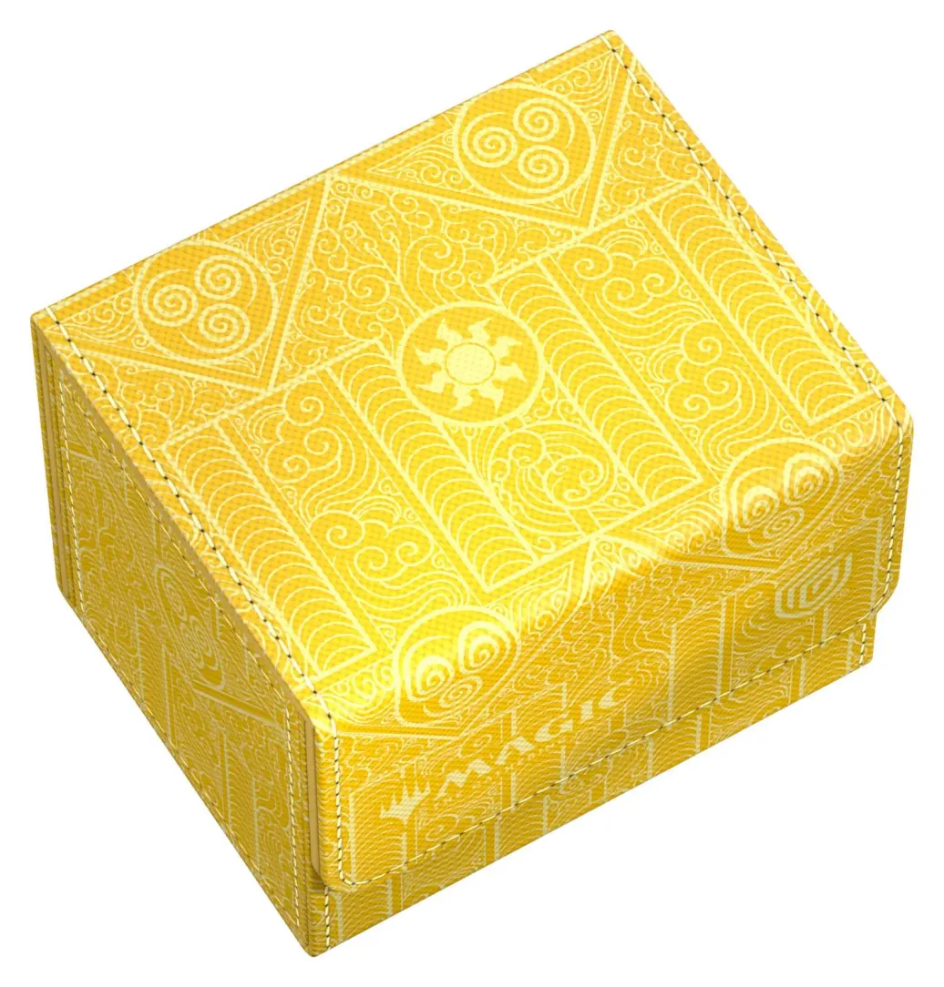 Der Sidewinder 100+ aus widerstandsfähigem Xenoskin-Material fasst bis zu 100 doppelt gesleevte Karten, die dank eines starken Magnetverschlusses und der schonenden Mikrofaser-Innenseite sicher in der Deck-Box aufgehoben sind. Die hochwertige Xenoskin-Oberfläche des Sidewinders ist vollfarbig mit offiziell lizenzierten Artworks aus dem Magic: The Gathering | Avatar: The Last Airbender-Set bedruckt.
