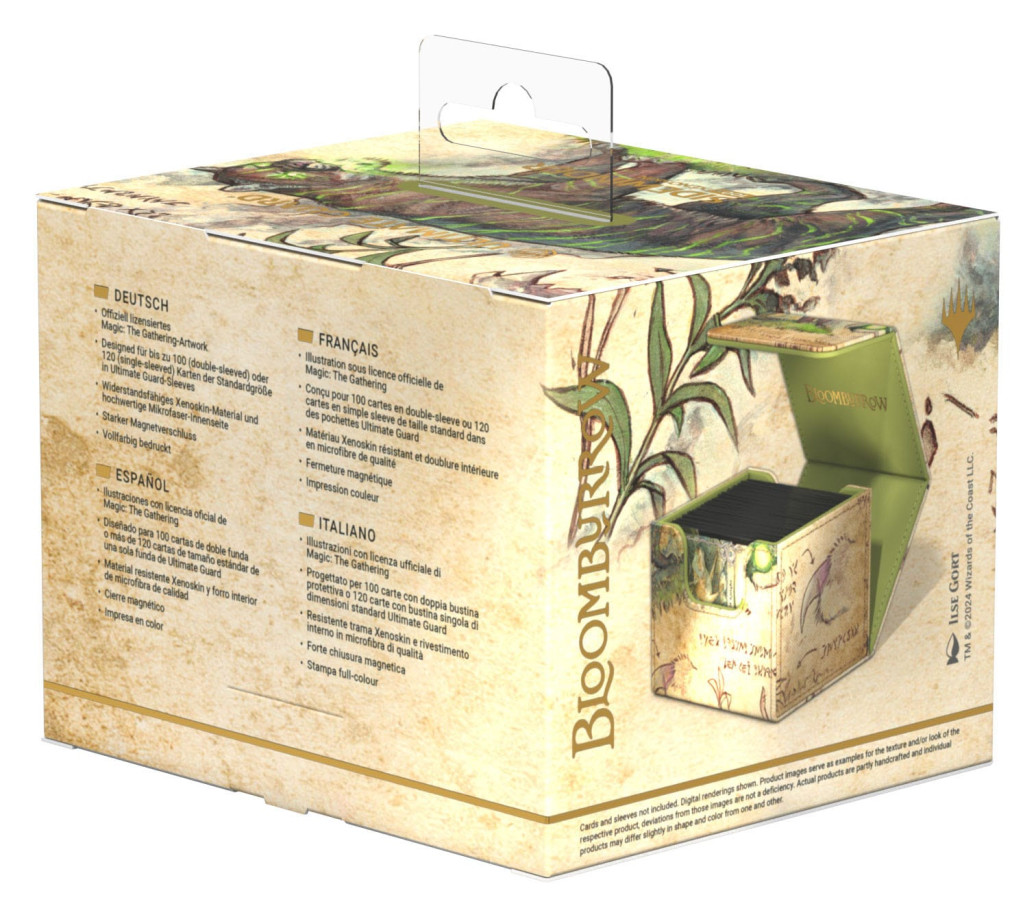 Erforsche die wilde Seite von Bloomburrow! Unsere Sidewinder 100+ sind aus vollfarbig bedrucktem, widerstandsfähigem Xenoskin-Material gefertigt und zeigen die offiziell lizensierten Magic: The Gathering-Artworks der epischen Calamity Beasts aus Bloomburrow im wunderschönen "Borderless Field Notes"-Style. Die Deck-Boxen fassen bis zu 100 (double-sleeved) bzw. 120 (single-sleeved) Karten und sind dank des starken Magnetverschlusses sowie der Mikrofaser bezogenen Innenseite die perfekte Wahl zur sicheren Aufbewahrung von Karten und Decks alle gängigen Kartenspiele.