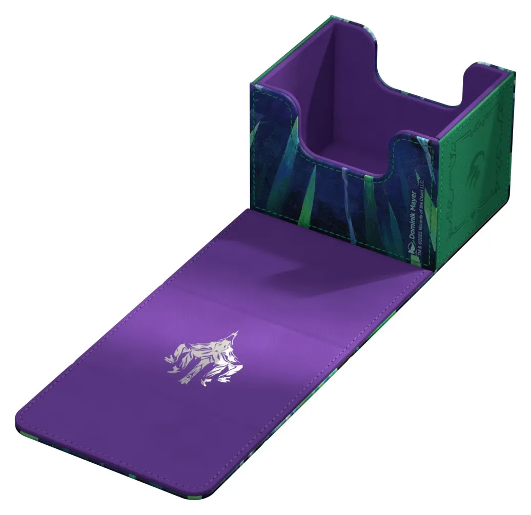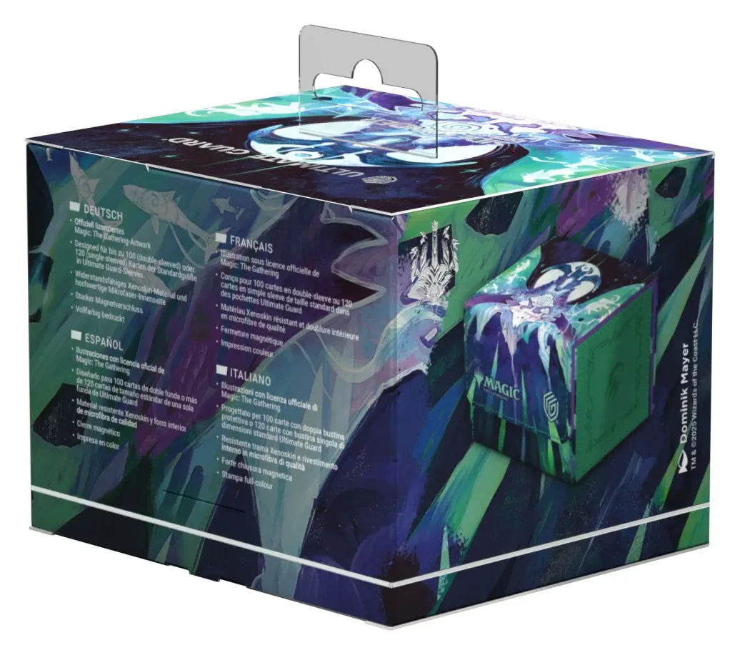 Der Sidewinder 100+ aus widerstandsfähigem Xenoskin-Material fasst bis zu 100 (double-sleeved) bzw. 120 (single-sleeved) Karten, die dank eines starken Magnetverschlusses und der schonenden Mikrofaser-Innenseite sicher in der Deck-Box aufgehoben sind. Die widerstandsfähige und hochwertige Xenoskin-Oberfläche des Sidewinders ist vollfarbig mit offiziell lizenzierten Artworks aus Magic: The Gatherings Set Tarkir: Dragonstorm bedruckt.