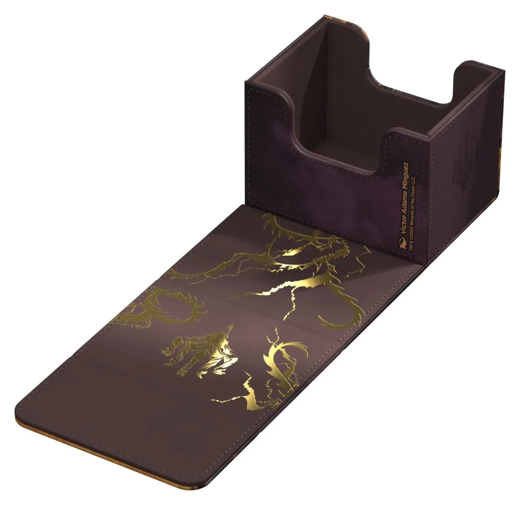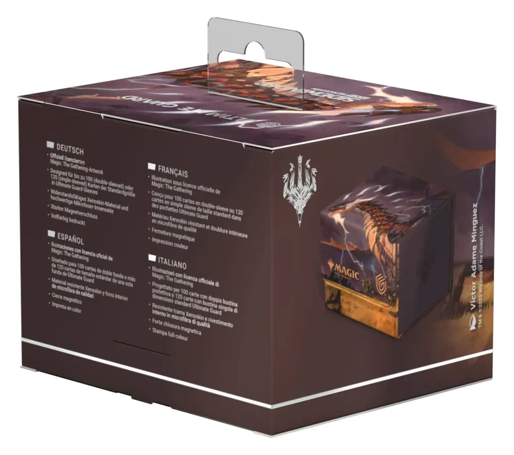 Der Special Edition Ghostfire Sidewinder 100+ Xenoskin, mit einer spektakulären schilernden Prägung auf der Mikrofaserinnenseite, ist mit offiziell lizenzierten Artworks aus Magic: The Gatherings Set Tarkir: Drachensturm bedruckt. Die hochwertige Deck-Box aus widerstandsfähigem Xenoskin-Material mit zuverlässigem Magnetverschluss fasst bis zu 100 (double-sleeved) bzw. 120 (single-sleeved) Karten.