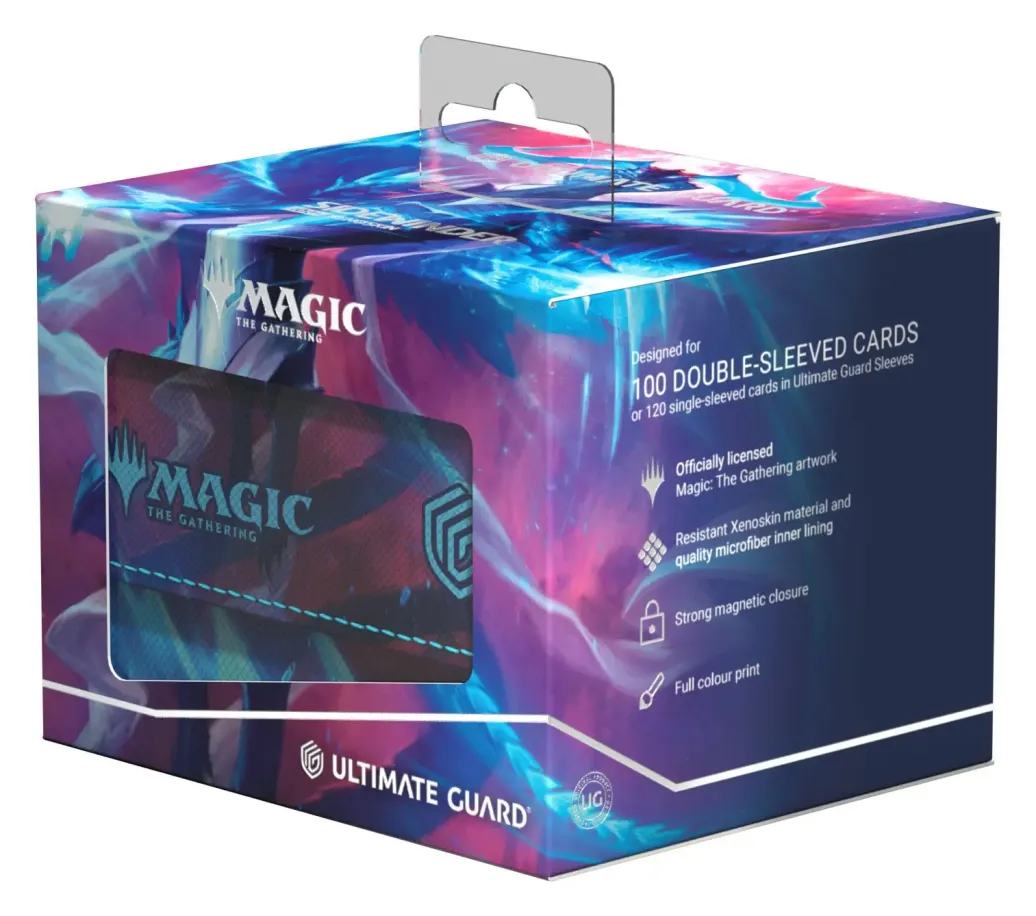 Der Special Edition Ghostfire Sidewinder 100+ Xenoskin, mit einer spektakulären schilernden Prägung auf der Mikrofaserinnenseite, ist mit offiziell lizenzierten Artworks aus Magic: The Gatherings Set Tarkir: Drachensturm bedruckt. Die hochwertige Deck-Box aus widerstandsfähigem Xenoskin-Material mit zuverlässigem Magnetverschluss fasst bis zu 100 (double-sleeved) bzw. 120 (single-sleeved) Karten.