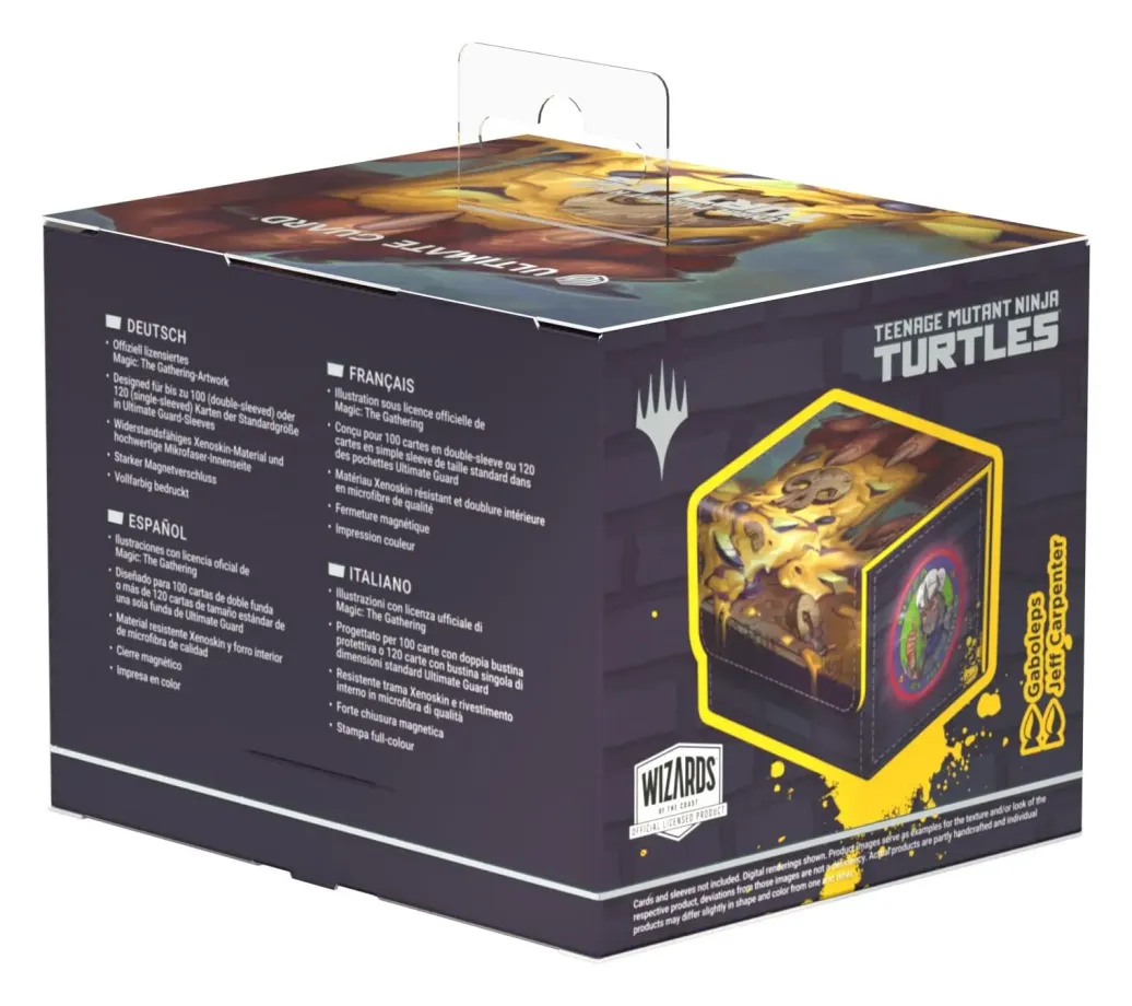 Der Sidewinder 100+ Xenoskin von Ultimate Guard ist eine Premium-Deckbox für Magic: The Gathering, die dank ihres widerstandsfähigen Xenoskin-Materials, der hochwertigen Mikrofaserinnenseite und eines starken Magnetverschlusses herausragenden Kartenschutz garantiert — und gleichzeitig einen einfachen und bequemen Zugriff auf die Karten im Inneren ermöglicht. Mit Platz für 100 doppelt gesleevte Karten (in Ultimate Guard-Hüllen*) und bedruckt mit offiziell lizenzierten Artworks aus dem "Magic: The Gathering | Teenage Mutant Ninja Turtles"-Set ist der Sidewinder 100+ Xenoskin die perfekte MTG-Deckbox für alle Magic-Formate (Commander/EDH, Modern, Standard, usw.). Kombinierbar mit Omnihive-, Superhive- und Smarthive-Boxen von Ultimate Guard.