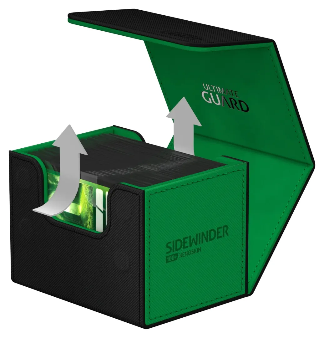 Im Ultimate Guard Sidewinder 100+ SYNERGY können mindestens 100 doppelt gesleevte Karten sicher verstaut und aufbewahrt werden. Es gibt ihn in 5 Farbkombinationen, damit jeder für sich die perfekte Wahl treffen kann: Zum Beispiel blau/weiß für alle, die nach Frieden streben oder grün/schwarz für die blutrünstigen Zombies unter uns.