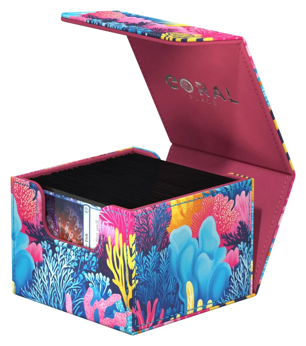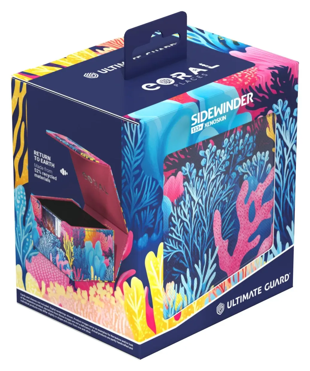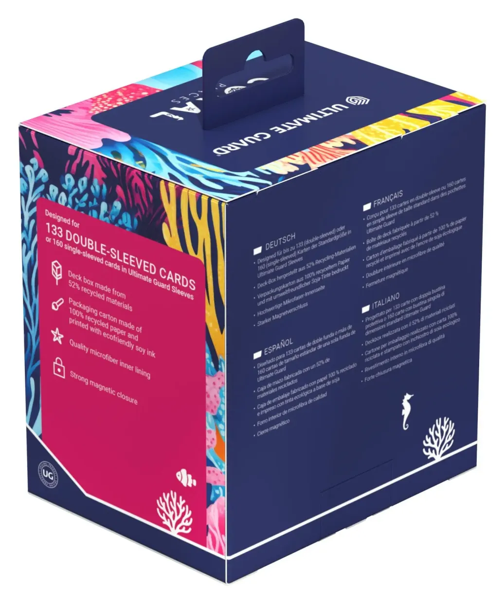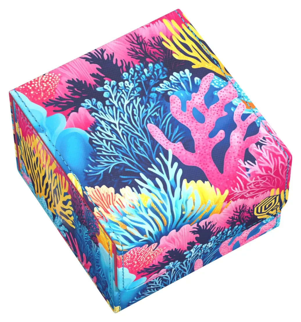 Tauche ein in blühende Unterwasserwelten mit Coral Places-Sidewindern von Ultimate Guard! Die nachhaltigen Deck-Boxen bestehen zu 52% aus Recycling-Materialien und haben neben einer widerstandsfähigen Xenoskin-Oberfläche einen starken Magnetverschluss sowie eine hochwertige Mikrofaser-Innenseite. Mit einem Fassungsvermögen von 133 doppelt gesleevten Karten*, ist es die perfekte MTG-Deck-Box für dein Commander-Deck mit extra Platz für Tokens! Auch die plastikfreie Verpackung der Coral Places-Sidewinder besteht komplett aus recyceltem Papier und zellulosebasierter Folie.