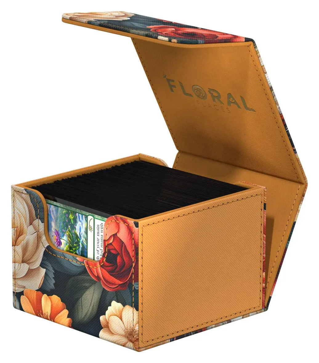 Der Sidewinder 133+ Xenoskin ist eine premium Deck-Box für Sammelkartenspiele und bietet herausragenden Kartenschutz dank des widerstandsfähigen Xenoskin-Materials, der hochwertigen Mikrofaser-Innenseite und des starken Magnetverschlusses. Gleichzeitig bietet der Sidewinder einfachen und bequemen Zugang zu den Karten im Inneren. Designt für 133 doppelt gesleevte Karten in Ultimate Guard-Hüllen, ist unser "Floral Places"-Sidewinder die perfekte Deck-Box für TCGs wie Magic: The Gathering, Pokémon, Lorcana, One Piece, Yu-Gi-Oh! und Flesh and Blood.