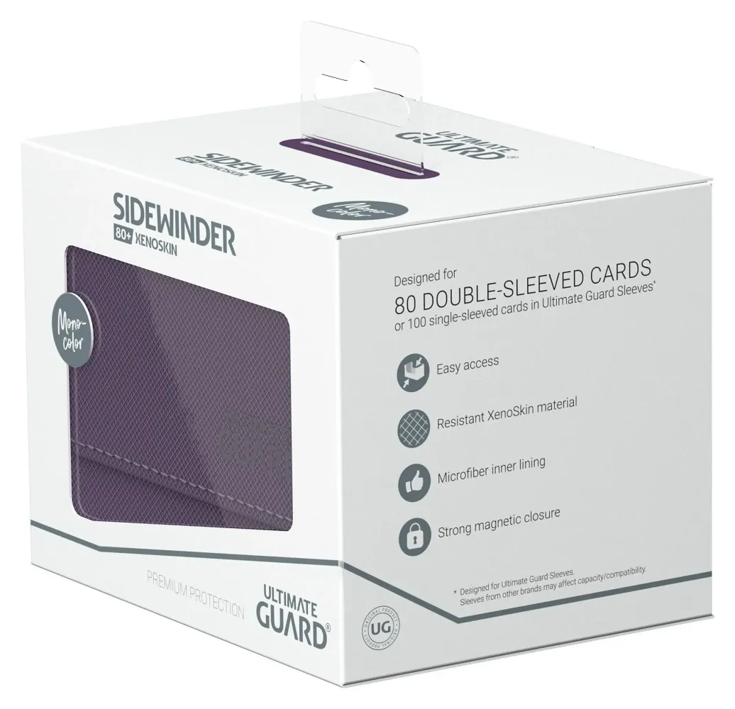 Unser praktischer Sidewinder 80+ bietet dir einen einfachen Zugriff auf dein Kartendeck von beiden Seiten. Die Box bietet Platz für bis zu 80 (double-sleeved) oder 100 (single-sleeved) Karten in Ultimate Guard Hüllen.