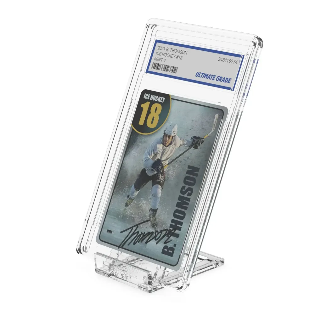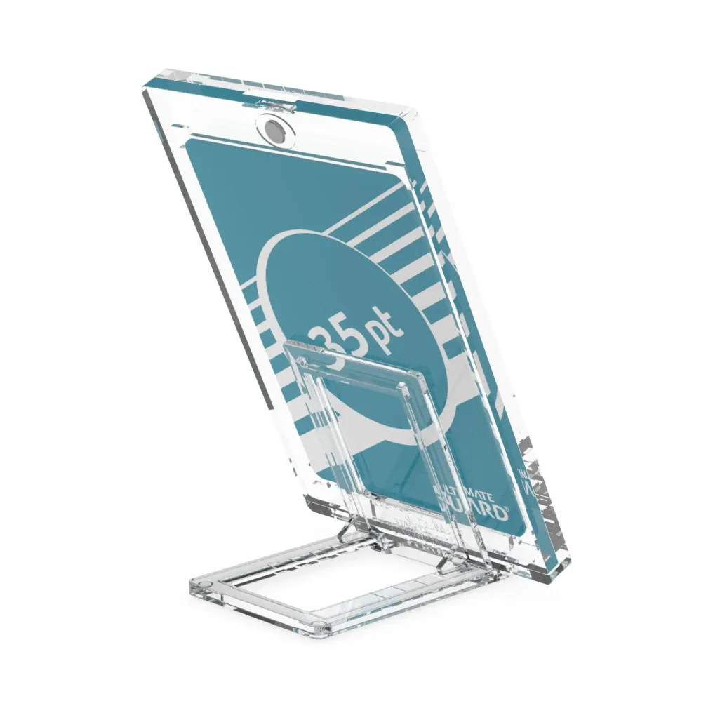 Unsere Slider Stands helfen dir deine wertvollsten Sammlerstücke ansprechend auszustellen. Sie bestehen aus zwei stabilen glasklaren Plastikteilen, die indivduell verstellbar und dadurch vielfach kompatibel sind. Optimiert für Ultimate Guard Magnetic Card Cases in verschiedenen Größen, erscheinen sie fast unsichtbar und bilden dadurch einen beeindruckenden Blickfang für deine Karten und Cases.