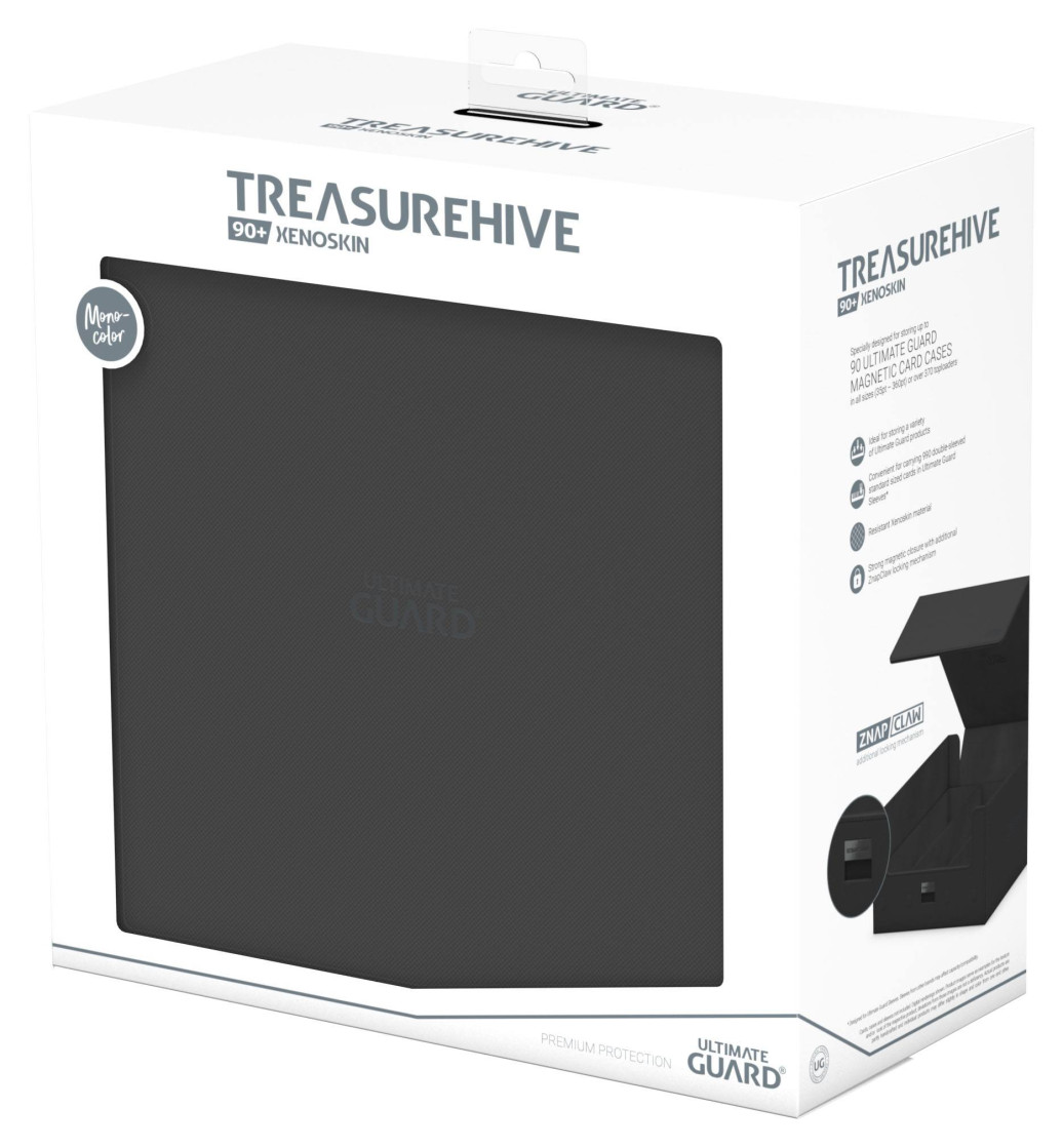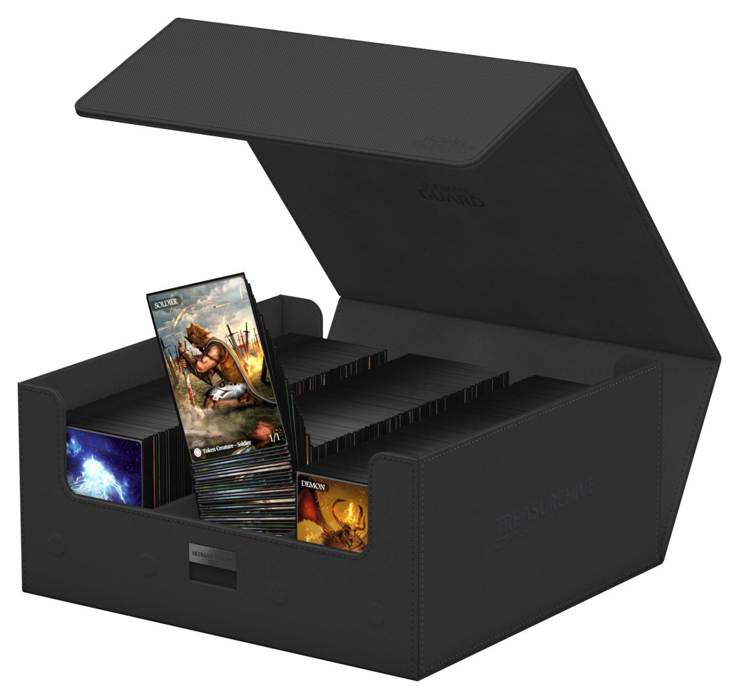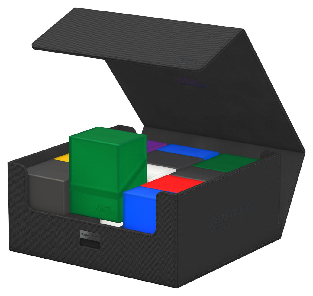 Das neueste Mitglied unserer Hive-Familie: das Treasurehive 90+! Speziell für die Aufbewahrung von bis zu 90 Ultimate Guard Magnetic Card Cases geeignet (mit 35pt). Alternativ kann diese elegante Schatzkiste auch über 370+ Toploader, 990 Karten (double-sleeved) und eine Vielzahl von Ultimate Guard-Deck Cases aufnehmen, um deine wertvollen Karten zu schützen. Schütze deine Schätze besser als jeder Pirat!