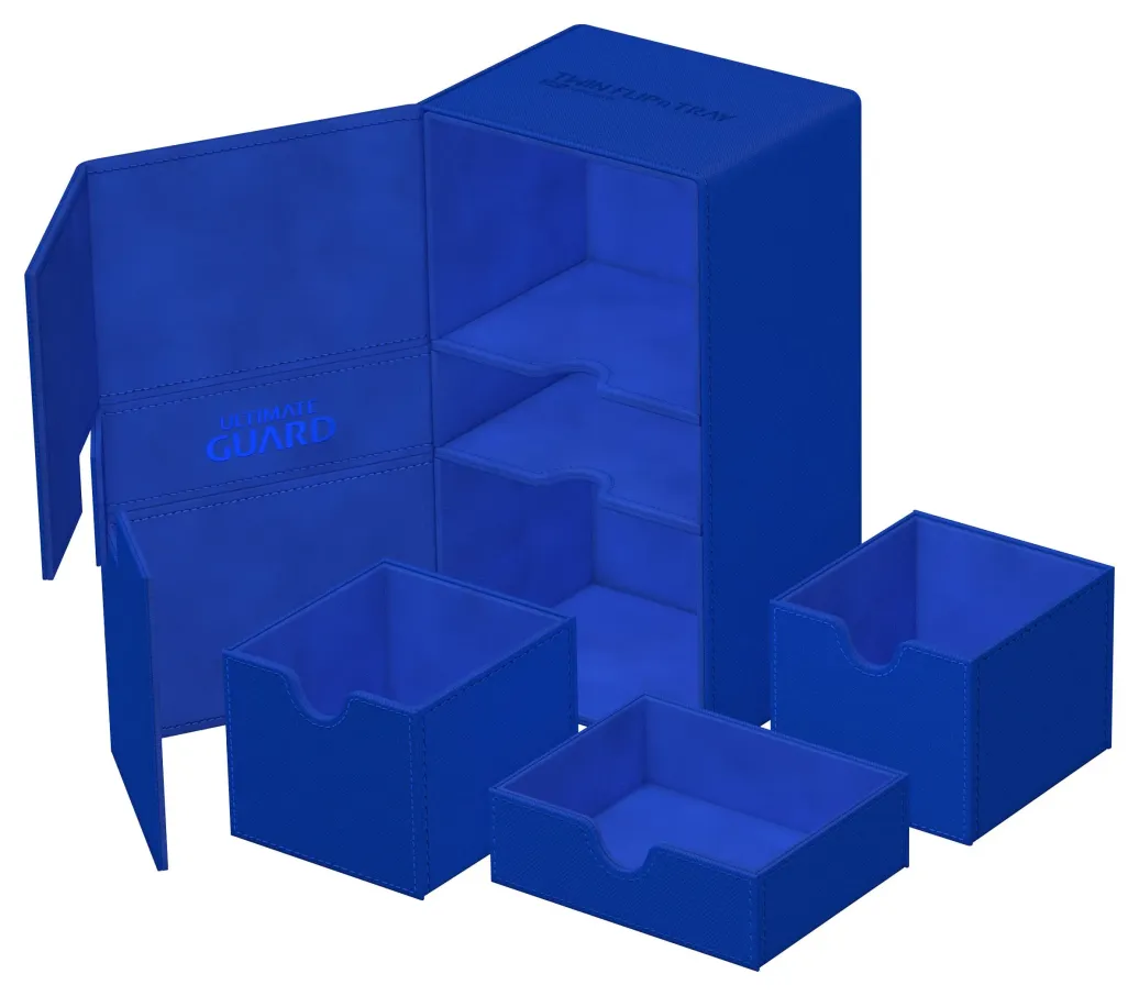 Es verdoppelt die Größe unseres klassischen Flip'n'Tray 100+ und ist das große Geschwisterchen, das sich jeder wünscht. Das Twin Flip'n'Tray 200+ bietet Platz für 200 Karten double-sleeved oder 240 Karten single-sleeved in Standardgröße*.