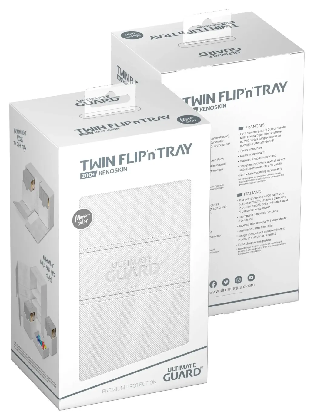 Es verdoppelt die Größe unseres klassischen Flip'n'Tray 100+ und ist das große Geschwisterchen, das sich jeder wünscht. Das Twin Flip'n'Tray 200+ bietet Platz für 200 Karten double-sleeved oder 240 Karten single-sleeved in Standardgröße*.