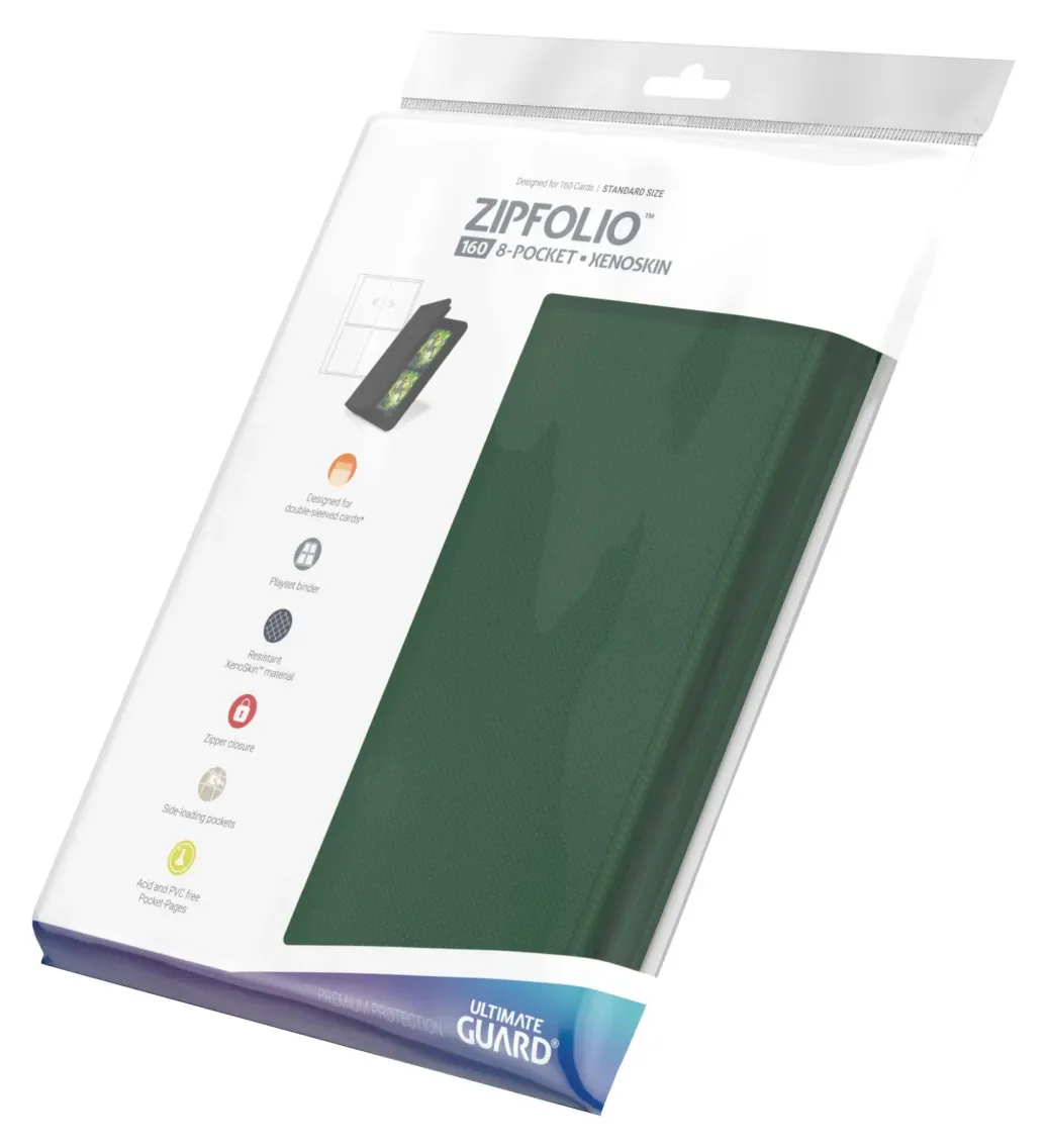 Hochwertige Kartenmappe mit strapazierfähigem XenoSkin-Einband, Reißverschluss und 20 integrierten 8-Taschen-Seiten für alle Sammelkarten der Standard- und der Japanischen Größe.