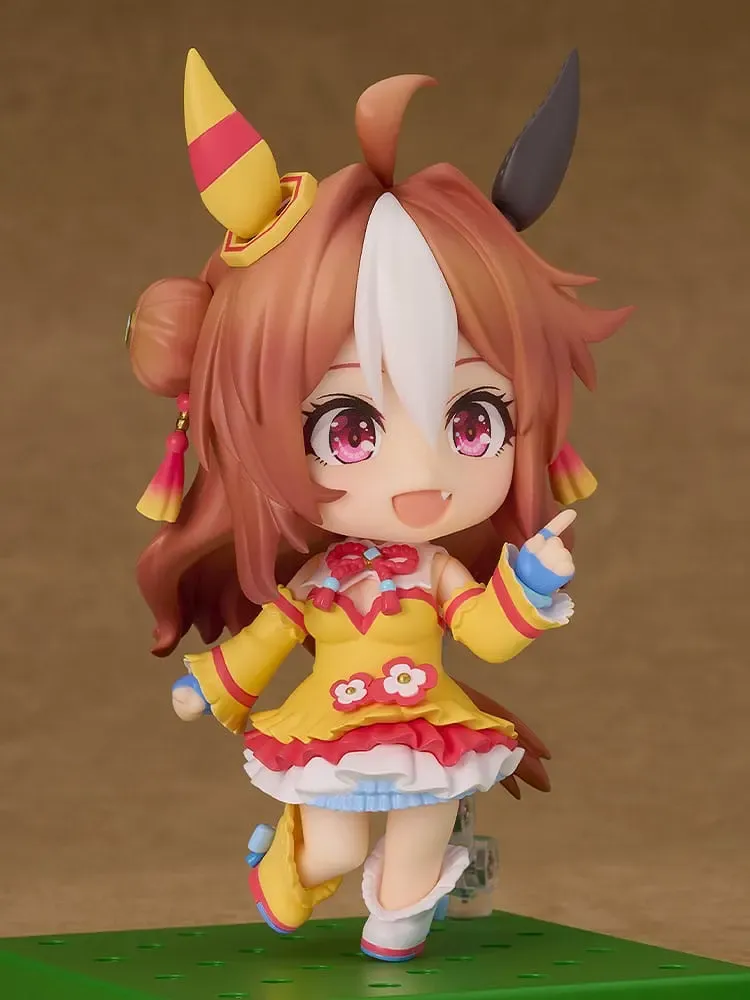 Zu "Uma Musume Pretty Derby" kommt diese detailreiche Actionfigur im "Nendoroid"-Design. Sie ist ca. 10 cm groß und wird mit weiterem Zubehör und Austauschteilen in einer Fensterbox geliefert.