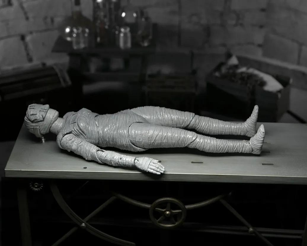 Aus NECAs Figuren-Reihe kommt diese coole Actionfigur aus dem Filmklassiker "Frankensteins Braut" (1935). Sie ist ca. 18 cm groß und wird mit jeder Menge Zubehör und Austauschteilen in einer Fensterbox geliefert.