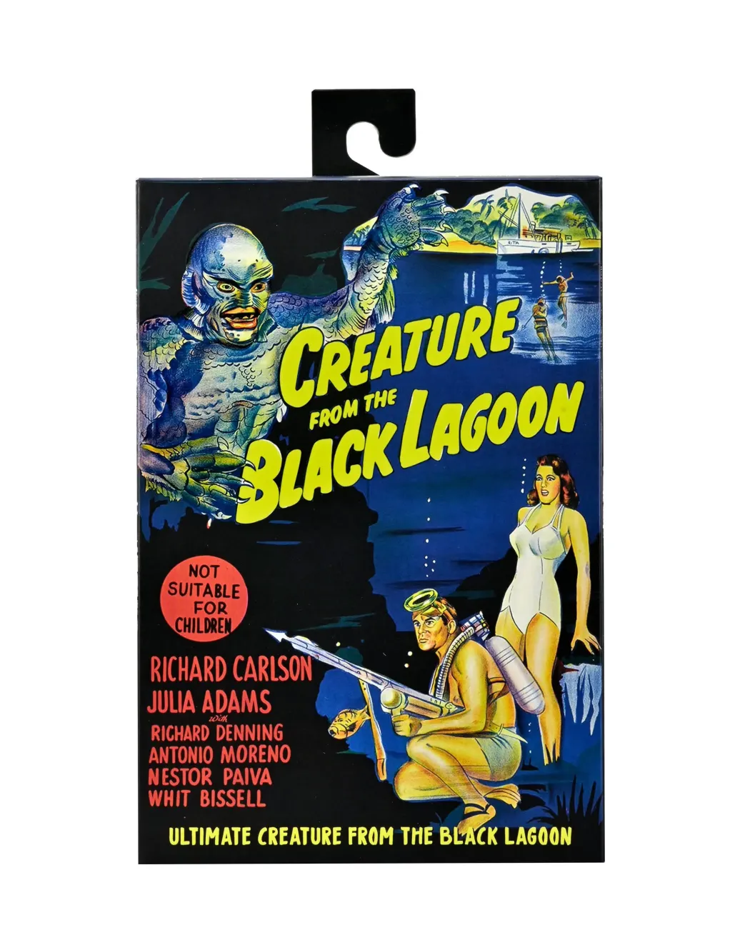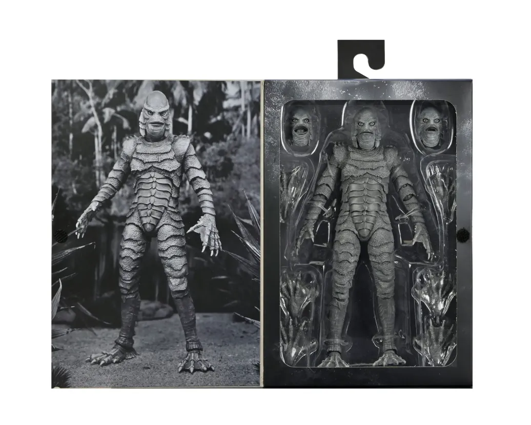 Aus NECAs Figuren-Reihe kommt diese coole Actionfigur aus dem Filmklassiker "Der Schrecken vom Amazonas" (1954). Sie ist ca. 18 cm groß und wird mit jeder Menge Zubehör und Austauschteilen in einer Fensterbox geliefert.