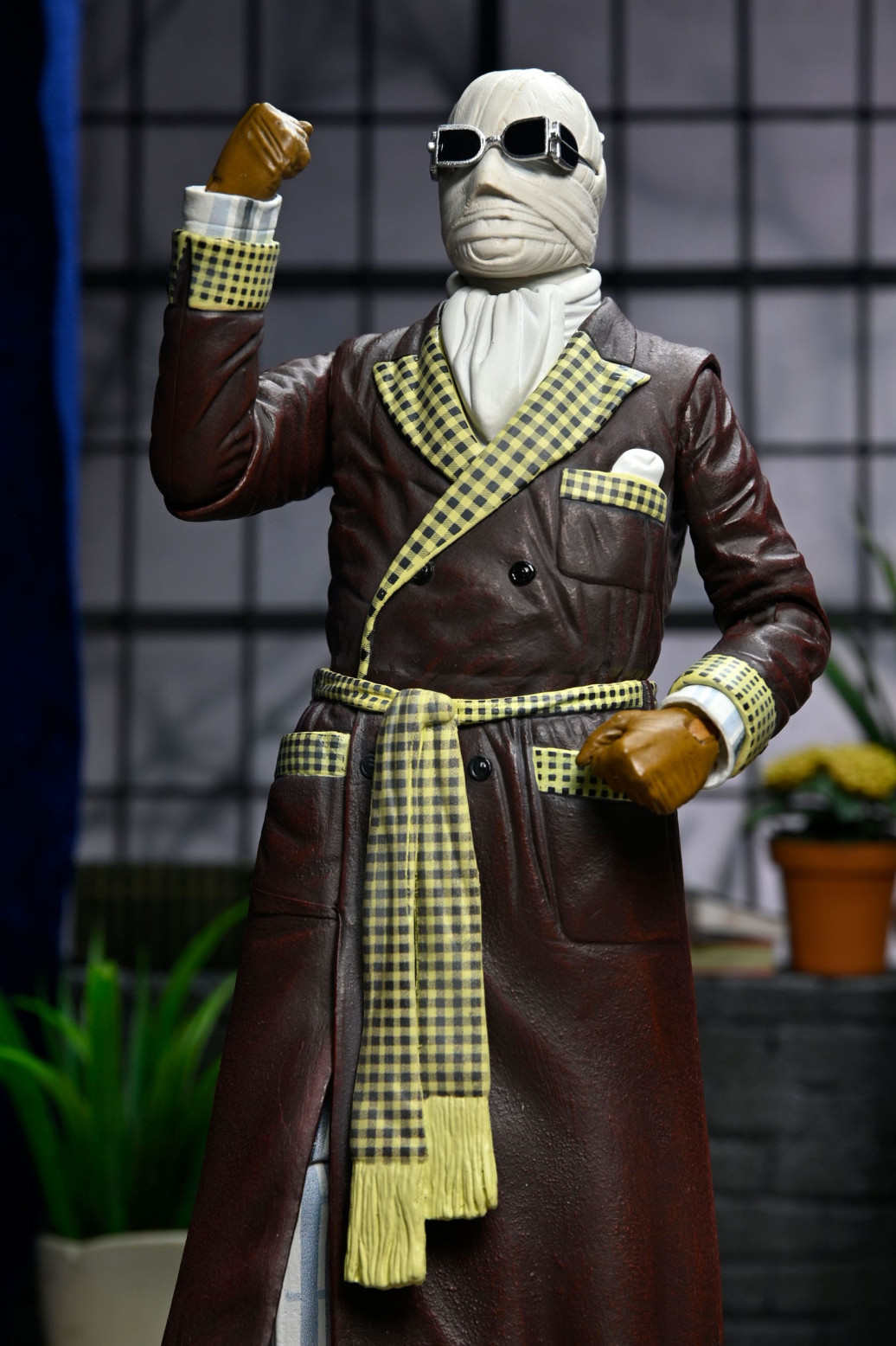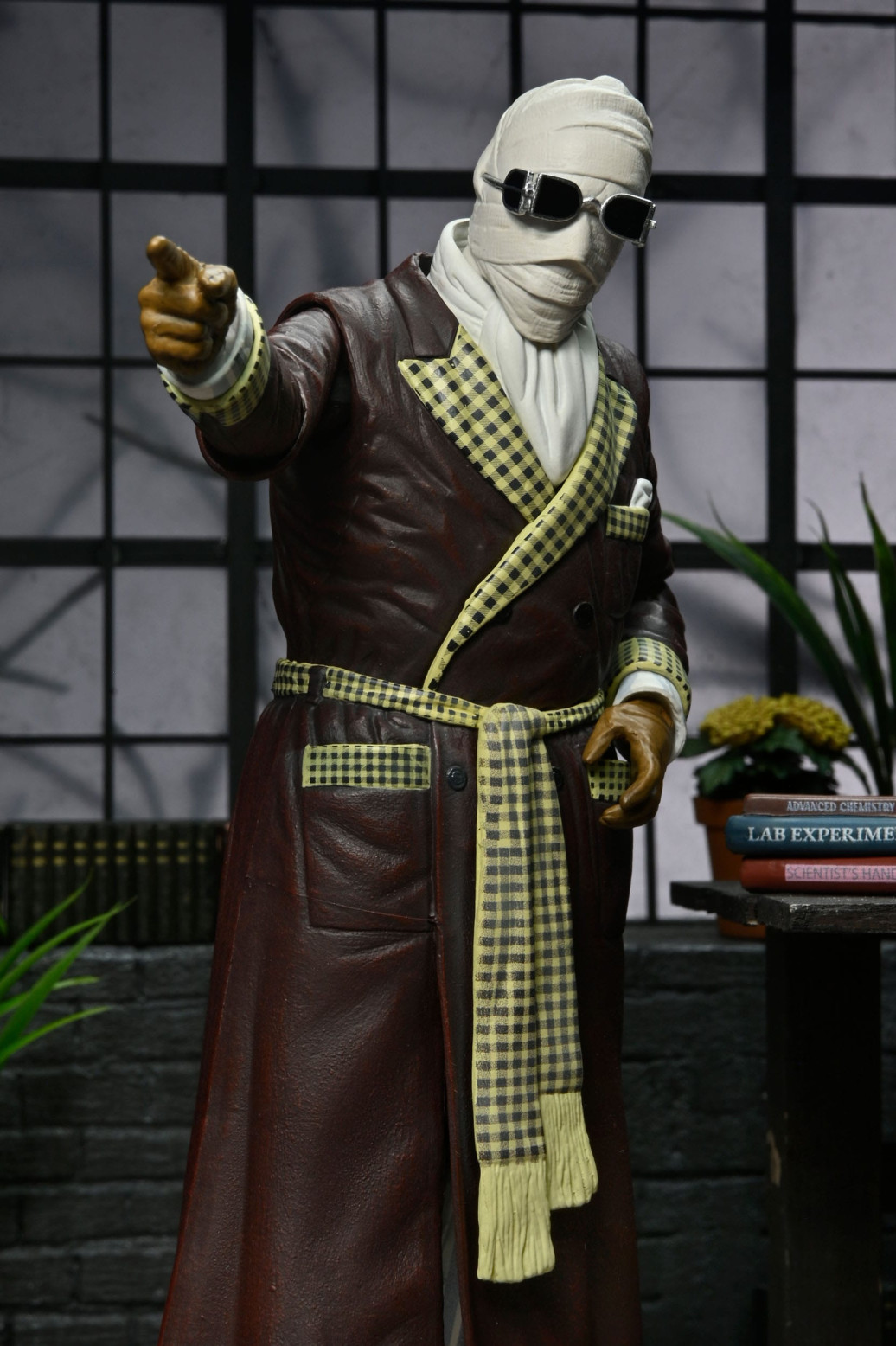 Aus NECAs "Universal Monsters"-Reihe kommt diese coole Actionfigur aus dem Filmklassiker "Der Unsichtbare" (1933). Sie ist ca. 18 cm groß und wird mit jeder Menge Zubehör und Austauschteilen in einer Fensterbox geliefert.