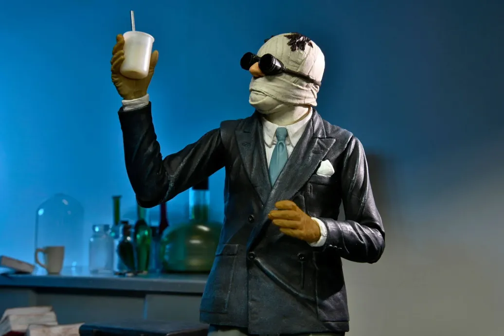 Aus NECAs Figuren-Reihe kommt diese coole Actionfigur aus dem Filmklassiker "Der Unsichtbare" (1933). Sie ist ca. 18 cm groß und wird mit jeder Menge Zubehör und Austauschteilen in einer Fensterbox geliefert.