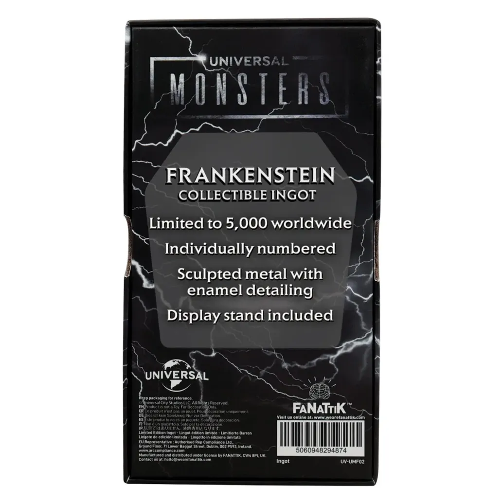 Offiziell lizenzierter Metallbarren aus Metall. Das Sammlerstück ist auf 5000 Stück limitiert und nummeriert. Er ist 6 x 13 cm groß und wird inklusive einem Ständer in einer Fensterbox geliefert.