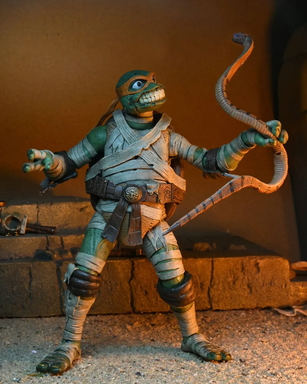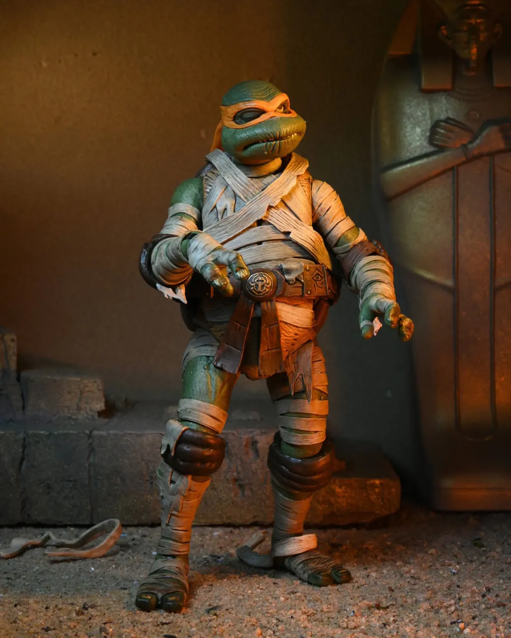 Aus NECAs "Ultimate" Reihe kommt dieses coole Mash-Up: Michelangelo von den Teenage Mutant Ninja Turtles als Mumie! Die detailreiche Actionfigur ist ca. 18 cm groß und wird zusammen mit weiterem Zubehör in einer Fensterbox geliefert.