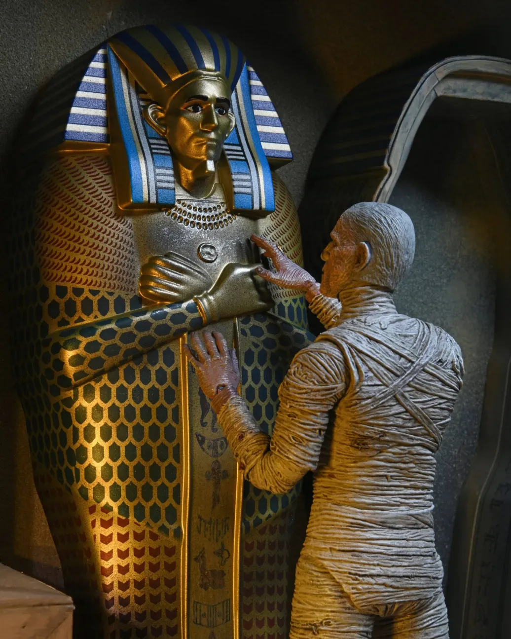 Passend zur Mummy Actionfigur (NECA04811) aus NECAs Universal Monsters-Reihe kommt dieses großartige Zubehör-Set mit einem Sarkophag (ca. 23 cm groß) mit abnehmbaren Deckel und einer Truhe (ca. 6 x 8 cm).