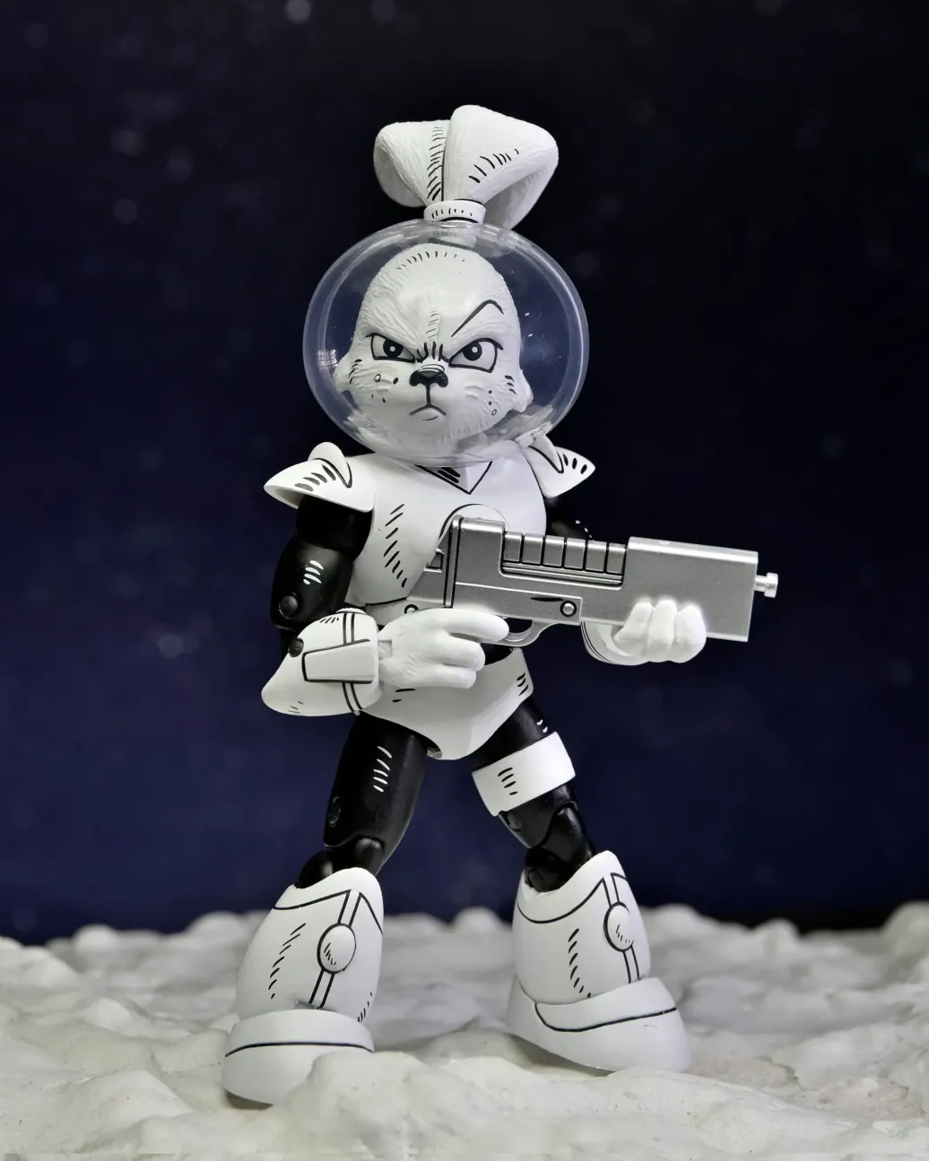 Aus der Comic-Serie "Usagi Yojimbo" kommt dieses coole Actionfigur. Sie ist ca. 18 cm groß und wird mit weiterem Zubehör in einer Fensterbox geliefert.