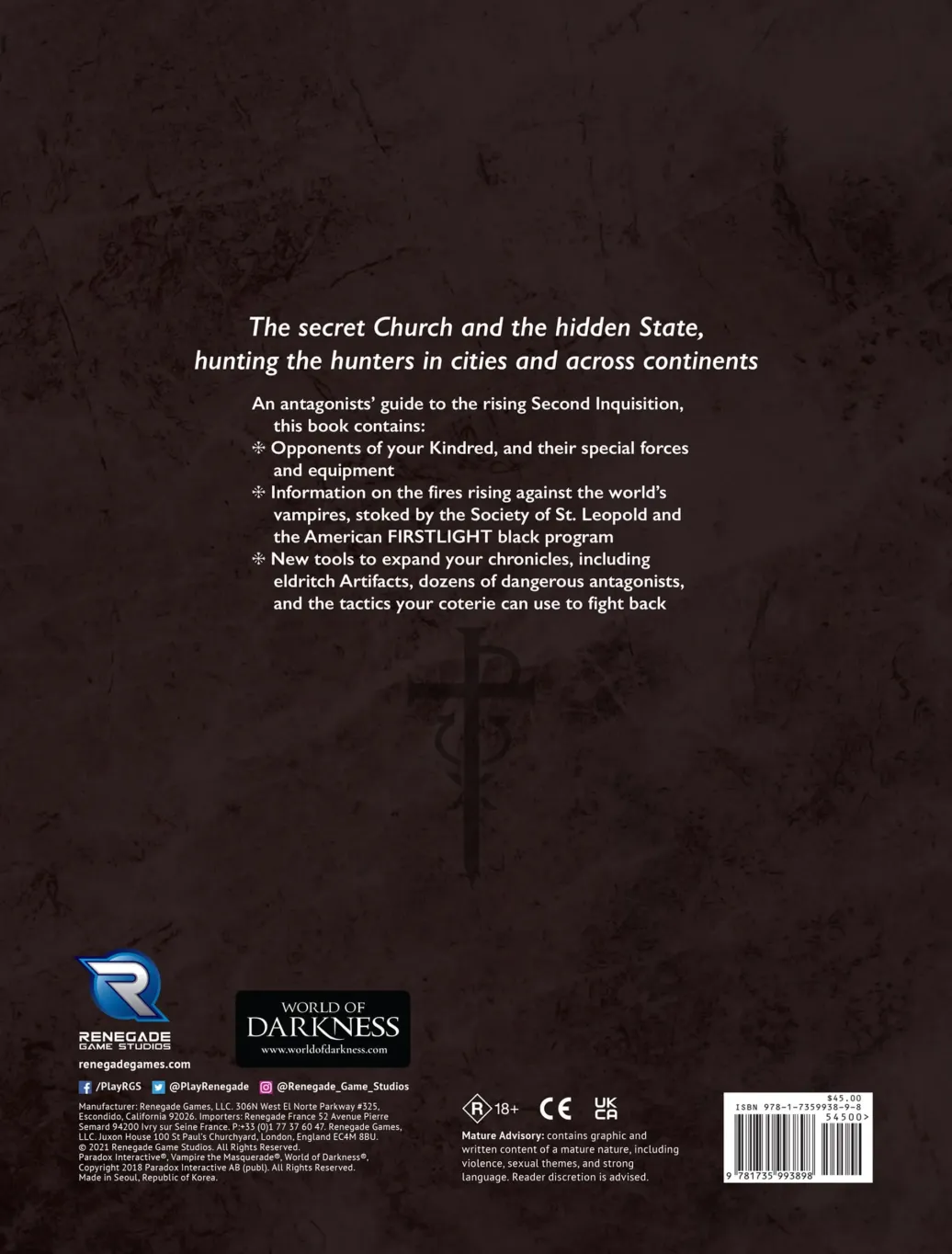 Neue Werkzeuge zur Erweiterung Ihrer Chroniken, darunter unheimliche Artefakte, Dutzende gefährlicher Antagonisten und Taktiken, mit denen Ihre Coterie zurückschlagen kann