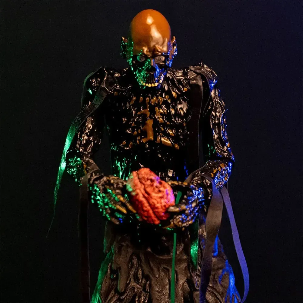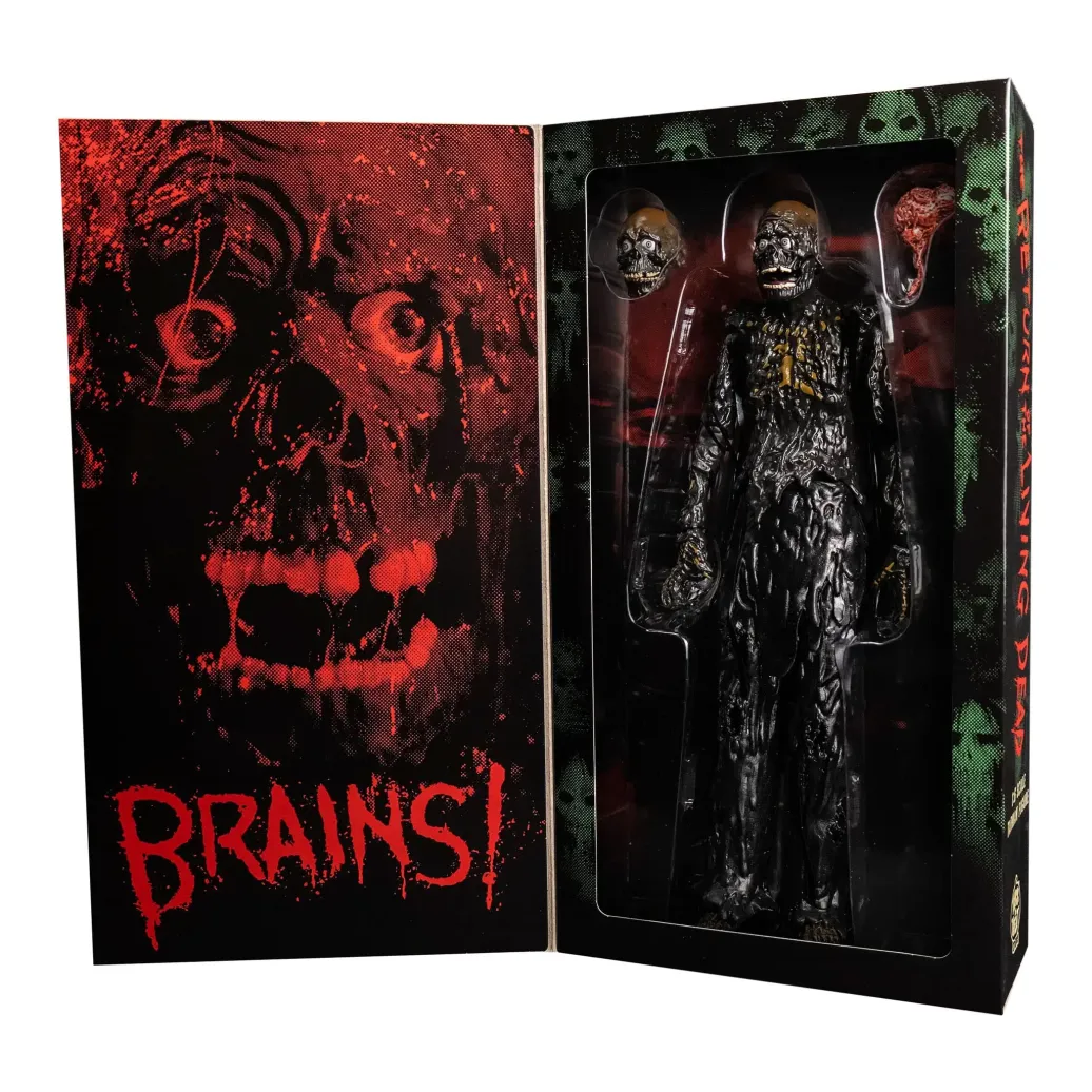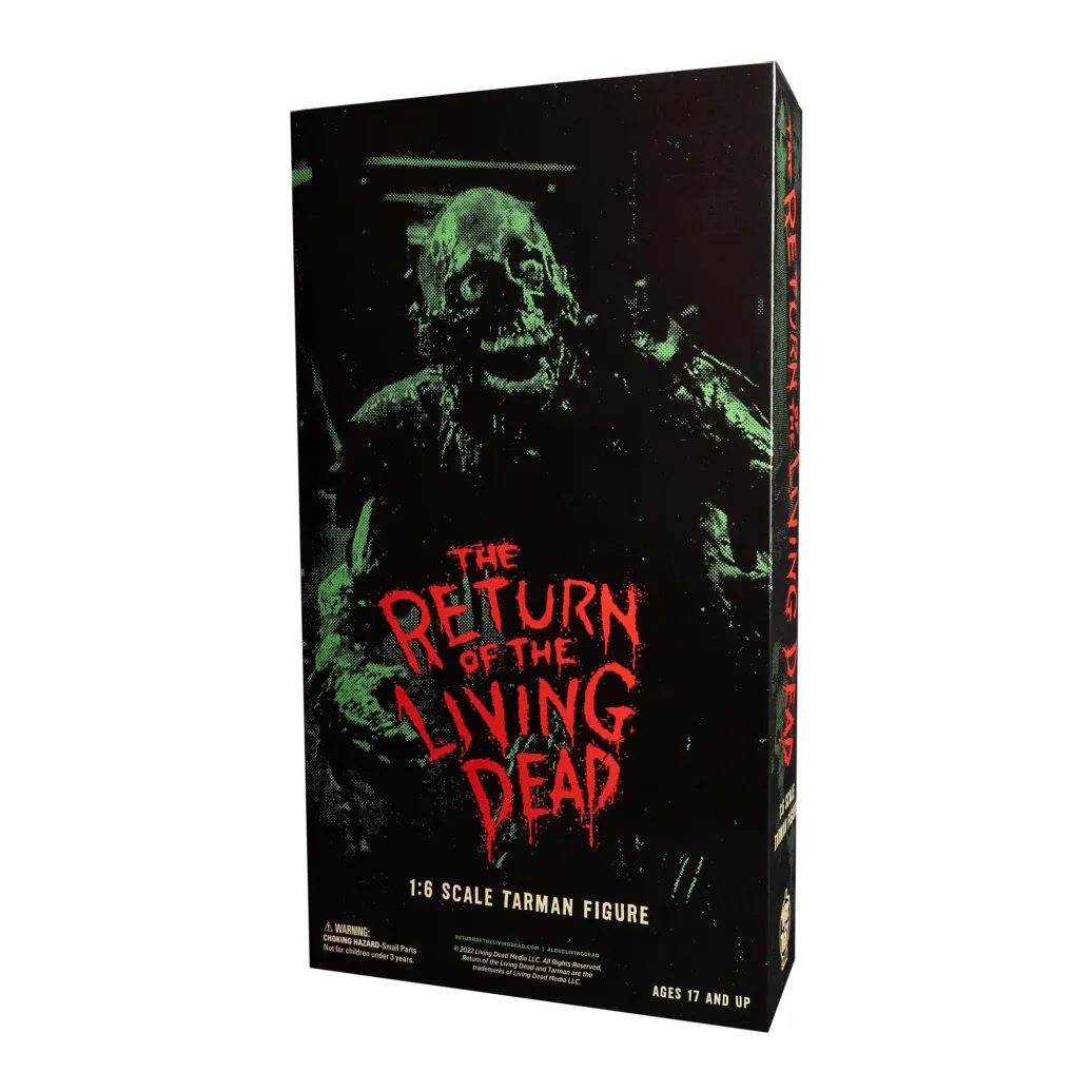 Trick or Treat Studios ist stolz darauf, die offiziell lizenzierte The Return of the Living Dead - Tarman - 1:6 Scale Actionfigur zu präsentieren. Diese erstaunliche Figur wurde von Grund auf neu modelliert, um ein möglichst filmgetreues Aussehen zu erreichen, mit verschiedenen Materialien und Oberflächen, um wirklich den perfekten, klebrigen, frisch aus dem Fass stammenden Zombie-Look einzufangen. Die Figur enthält 2 austauschbare Köpfe und ein Gehirn; die "BRAINS"-Kopfoption ist inspiriert von der ersten Begegnung mit Tarman, als er nach Tinas "BRAINS! "In dieser Szene wurde Tarman von einer Puppe dargestellt, die etwas anders aussah als die Kostümversion der Figur; und der Kopf "MEHR GEHIRNE" ist inspiriert von der Szene, in der die Gruppe unwissentlich auf Tarman (dargestellt von einem kostümierten Schauspieler) im Keller trifft, als sie Tina helfen wollen. Tarman ruft "MEHR GEHIRNE!", nachdem er einen Snack aus Suicide gemacht hat. Kommt in einer schönen Sammlerbox mit einem Flip-Back-Display. Halten Sie Ausschau nach dem Zubehörset mit dem gespaltenen Hund, dem Trioxin-Fass und der Kellerkulisse, das demnächst erscheint!