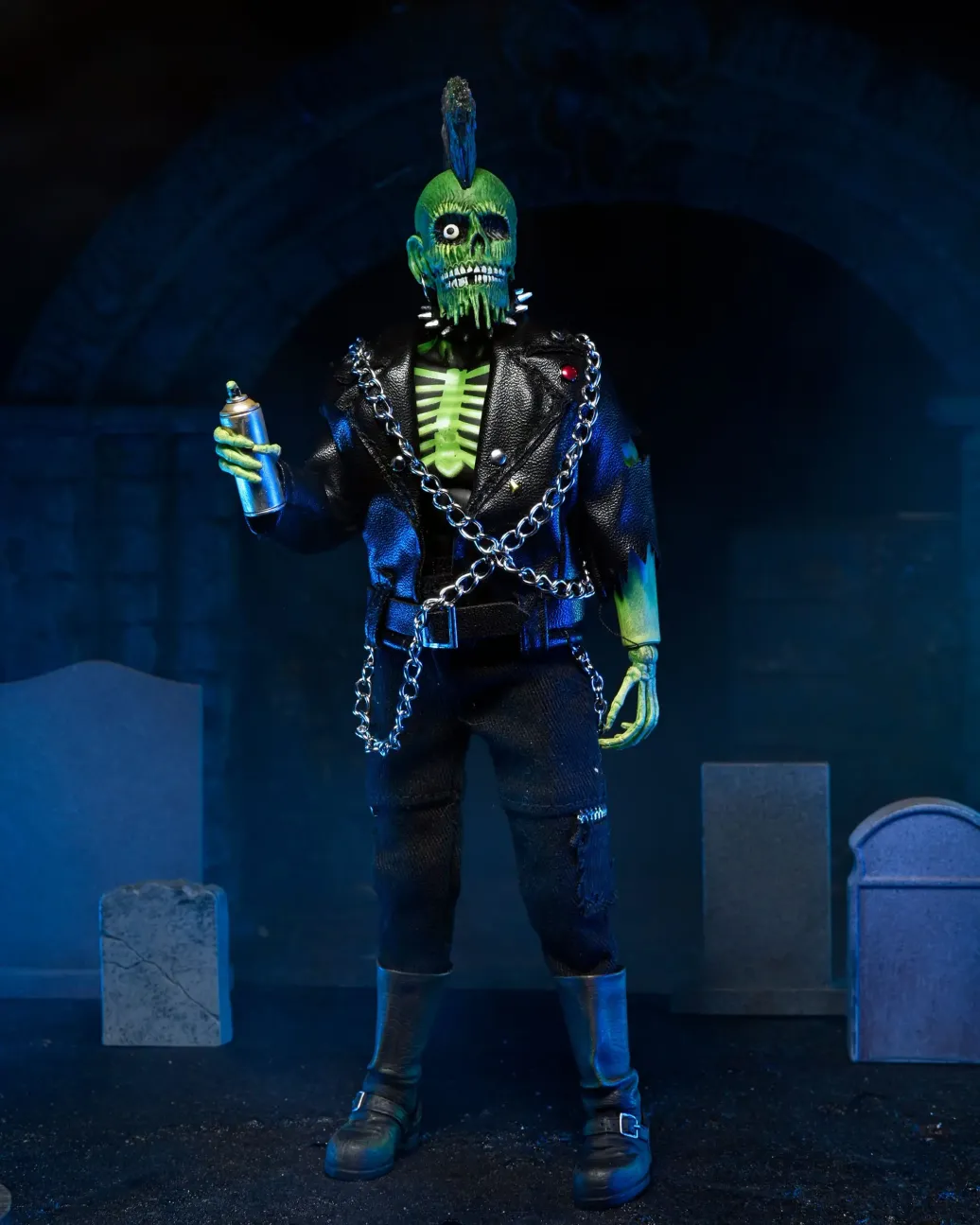 Zur 1985er Horror-Komödie "Verdammt, die Zombies kommen" (OT: Return of the Living Dead) kommen diesen beiden Actionfiguren im Retro-Look. Sie sind ca. 20 cm groß, tragen echte Stoffkleidung und werden mit weiterem Zubehör geliefert.