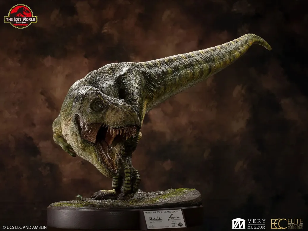 Elite Creature Collectibles ist stolz darauf, einen Tyrannosaurier Buck im Maßstab 1:12 aus The Lost World zu präsentieren: Jurassic Park. ILM-Künstler Bitan hat den Buck aus dem Film originalgetreu nachgebildet, und die Maquette wurde von ECC-Künstler Oskar Ankarudd bemalt. Dank der atemberaubenden Detailtreue werden Sie vielleicht sogar Merkmale entdecken, die auf der Leinwand nicht zu sehen waren.