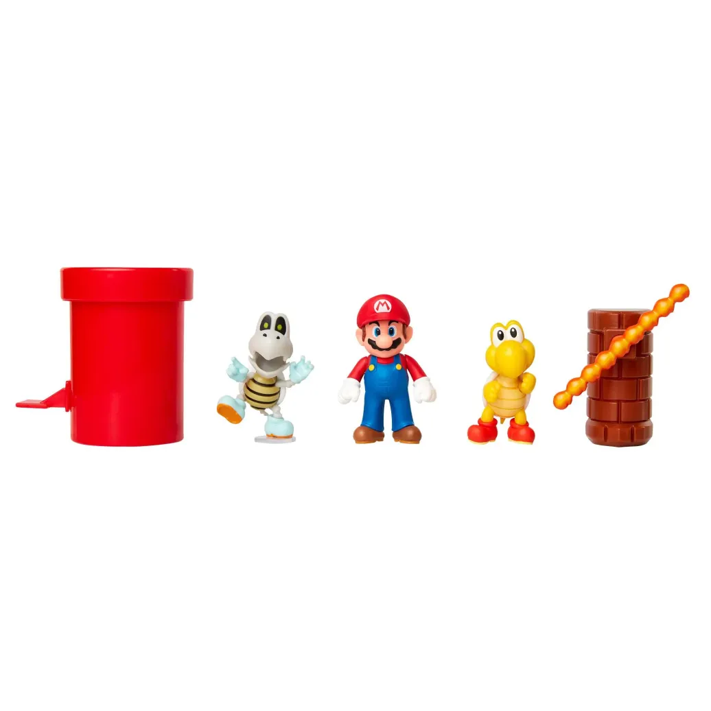 Aus dem Nintendo Universum kommt dieses offiziell lizenzierte Verlies Diorama Set. Die Figuren sind ca. 6 cm groß und werden zusammen mit Zubehör und interaktiven Teilen in einer Fensterbox geliefert.