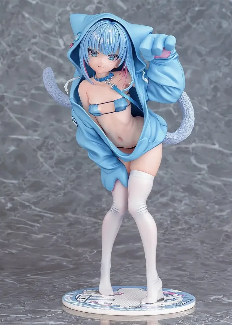 Die Originalfigur kanzarin-chan des beliebten Illustrators kanzarin wurde als Figur im Maßstab 1:6 umgesetzt, nachgebildet mit einem Kapuzenpullover mit Katzenmotiv über ihrer nackten Haut! Sie wurde sorgfältig modelliert und bemalt, wobei hinter ihrer scheinbar unschuldigen Haltung und ihrem neckischen Lächeln ein Hauch von Verführung lauert. Ihre Augen werden auf den Kontrast zwischen ihrem weiten Kapuzenpullover und den Blicken auf ihren schlanken Körper, der darunter hervorblitzt, fixiert sein. kanzarin-chans Natur, zusammen mit ihrem Halsband, ihrer Leine und ihrem Schwanz, kann zu unmoralischen Gedanken führen. Ihr Kapuzenpullover kann für einen schlichteren Look abgenommen werden, und ein Teil ihres Bikinis ist ebenfalls abnehmbar, was verschiedene Anzeigeoptionen ermöglicht!