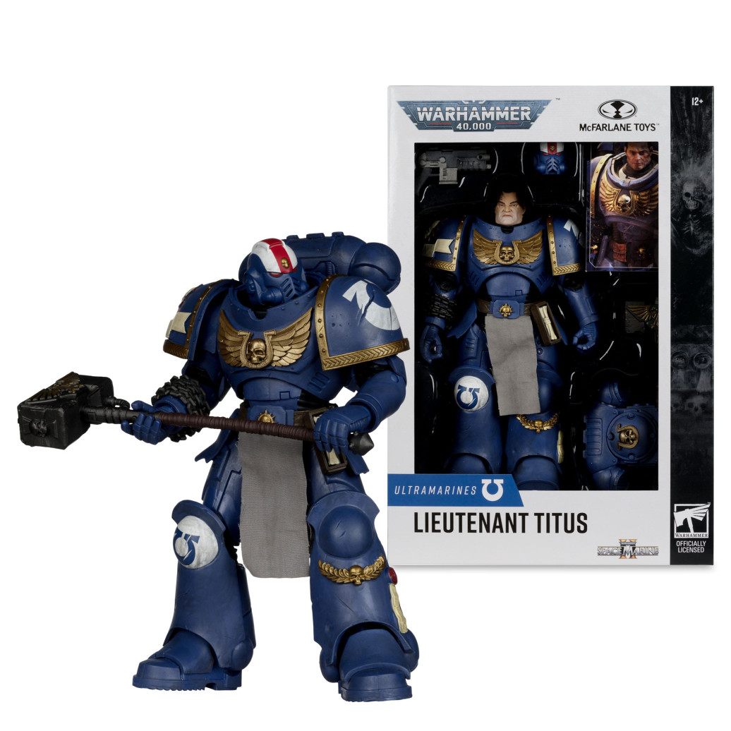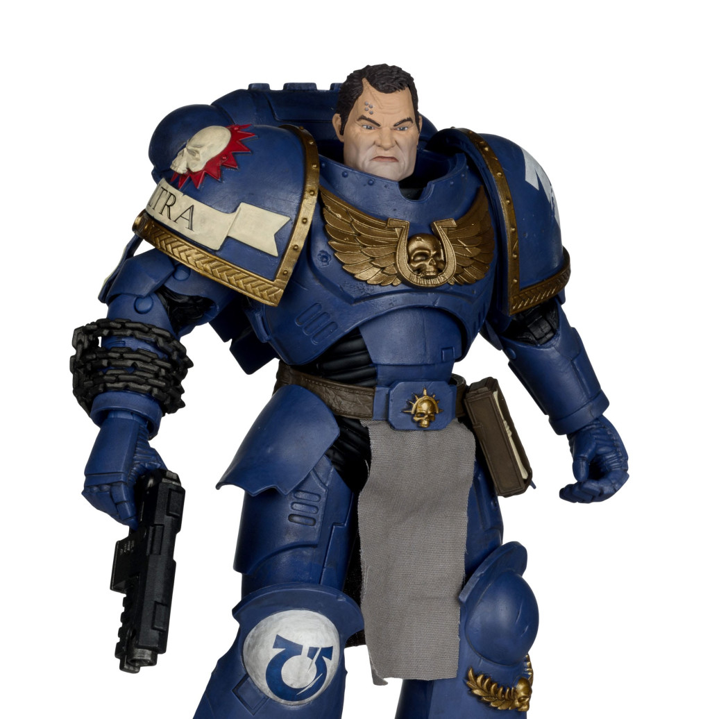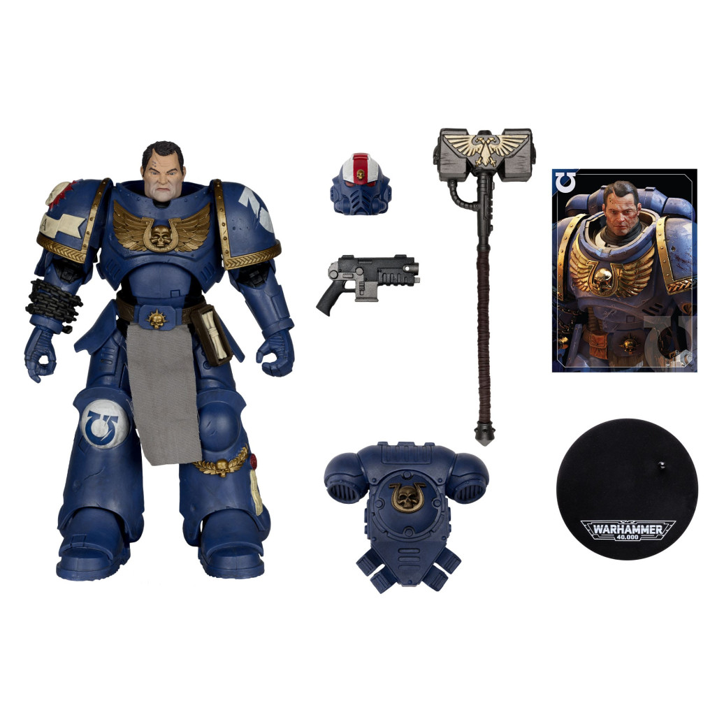 Zum Tabletop-Spiel "Warhammer 40,000" kommt diese detailreiche, bewegliche Actionfigur. Sie ist ca. 18 cm groß und wird mit weiterem Zubehör und Base in einer bedruckten Fensterbox geliefert.