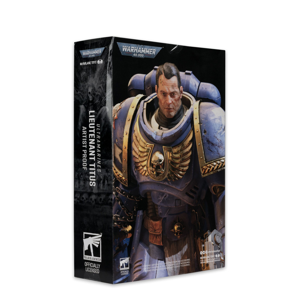 Zum Tabletop-Spiel "Warhammer 40,000" kommt diese detailreiche, bewegliche Actionfigur. Sie ist ca. 18 cm groß und wird mit weiterem Zubehör und Base in einer bedruckten Fensterbox geliefert.