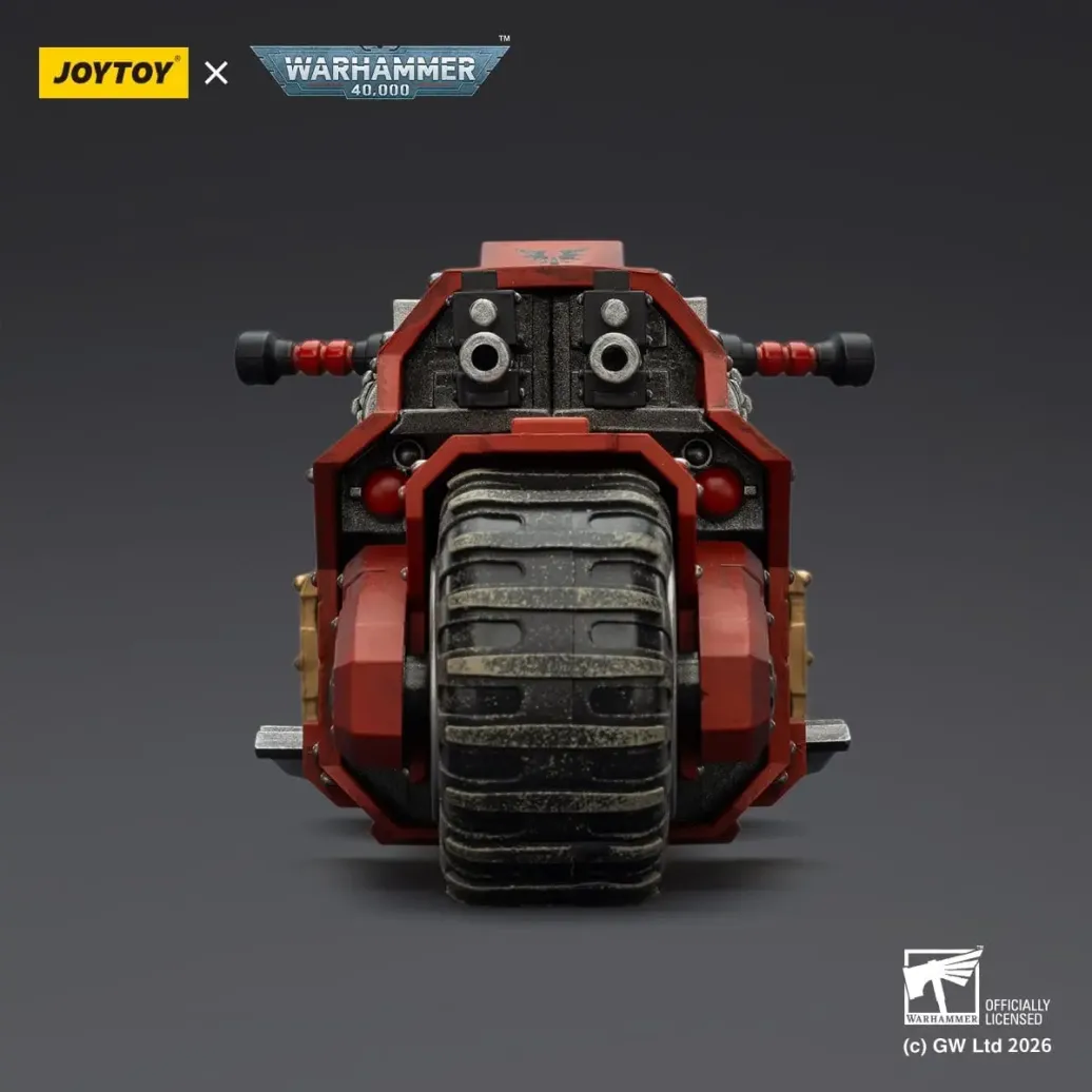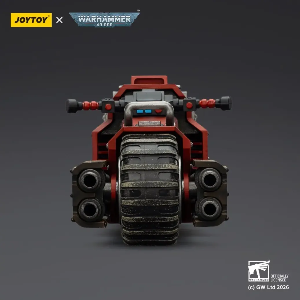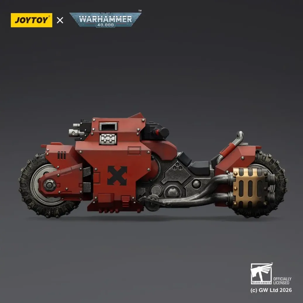 Diese Actionfigur aus der Warhammer 40.000-Lizenz wird von Joy Toy (CN) hergestellt. Sie stellt das Raider-pattern Combat Bike Blood Angels with twin-linked bolt rifles dar und hat eine Höhe von 22 cm.