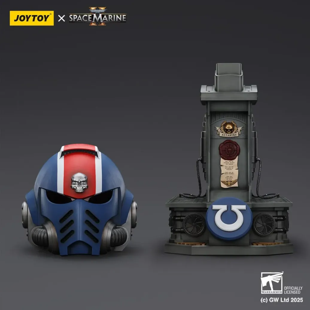 Zum Tabletop-Spiel "Warhammer 40k" kommt dieser detailreiche, bewegliche und tragbare Helm mit Halter. Der Helm ist ca. 30 cm Hoch mit LED Funktion. Der Display-Stand mit Helm ist ca. 44 cm Hoch.