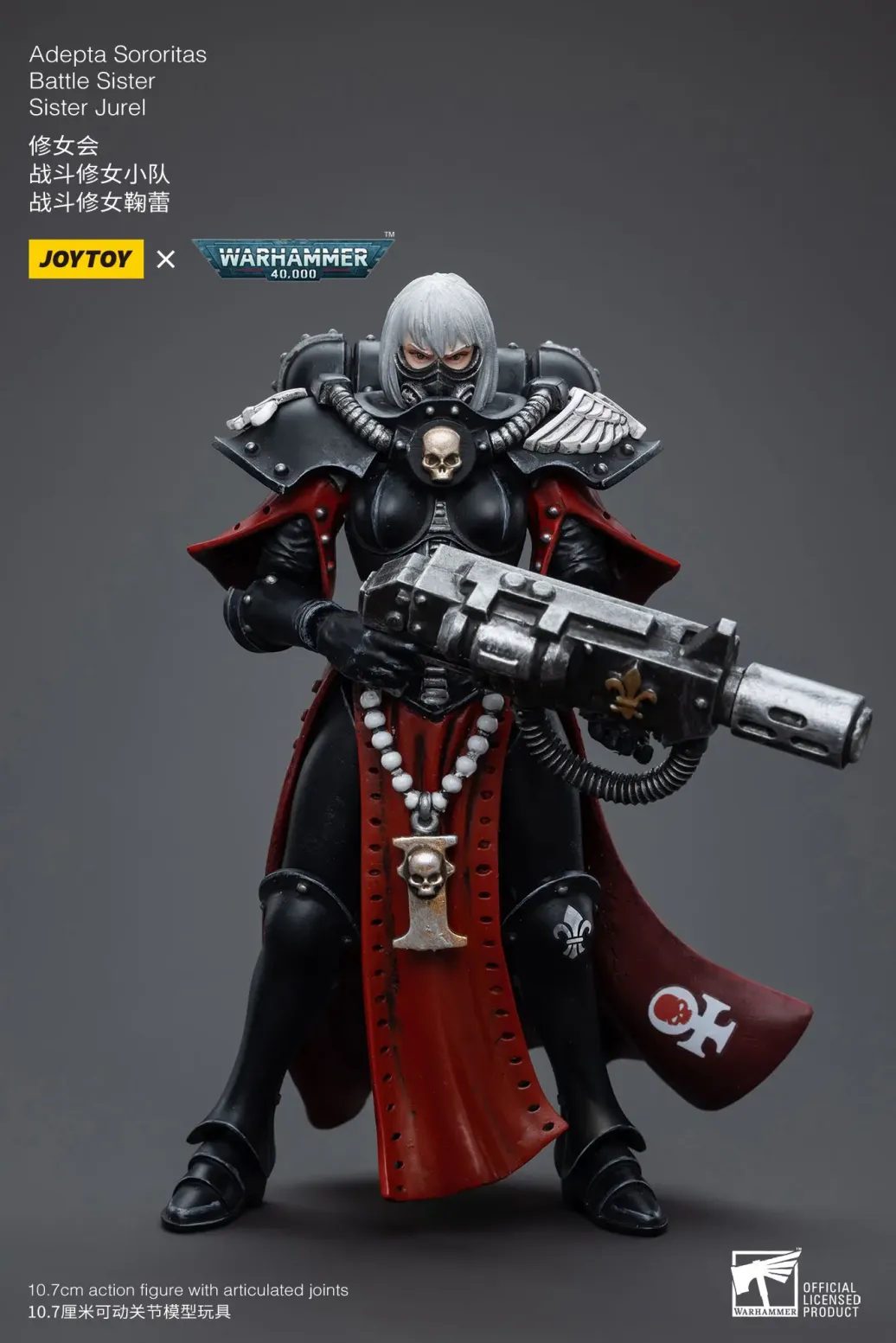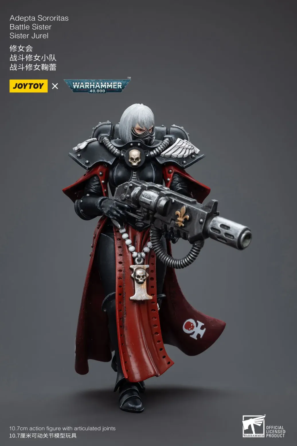 Zum Tabletop-Spiel "Warhammer 40k" kommt diese detailreiche, bewegliche Actionfigur. Sie ist ca. 10 cm groß und wird mit weiterem Zubehör geliefert.