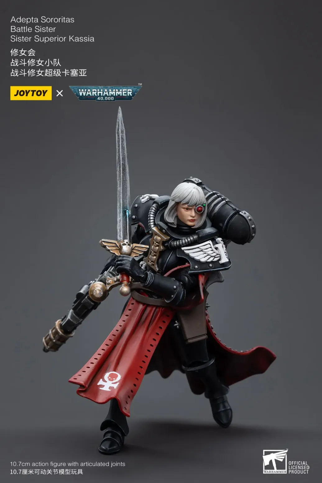 Zum Tabletop-Spiel "Warhammer 40k" kommt diese detailreiche, bewegliche Actionfigur. Sie ist ca. 10 cm groß und wird mit weiterem Zubehör geliefert.