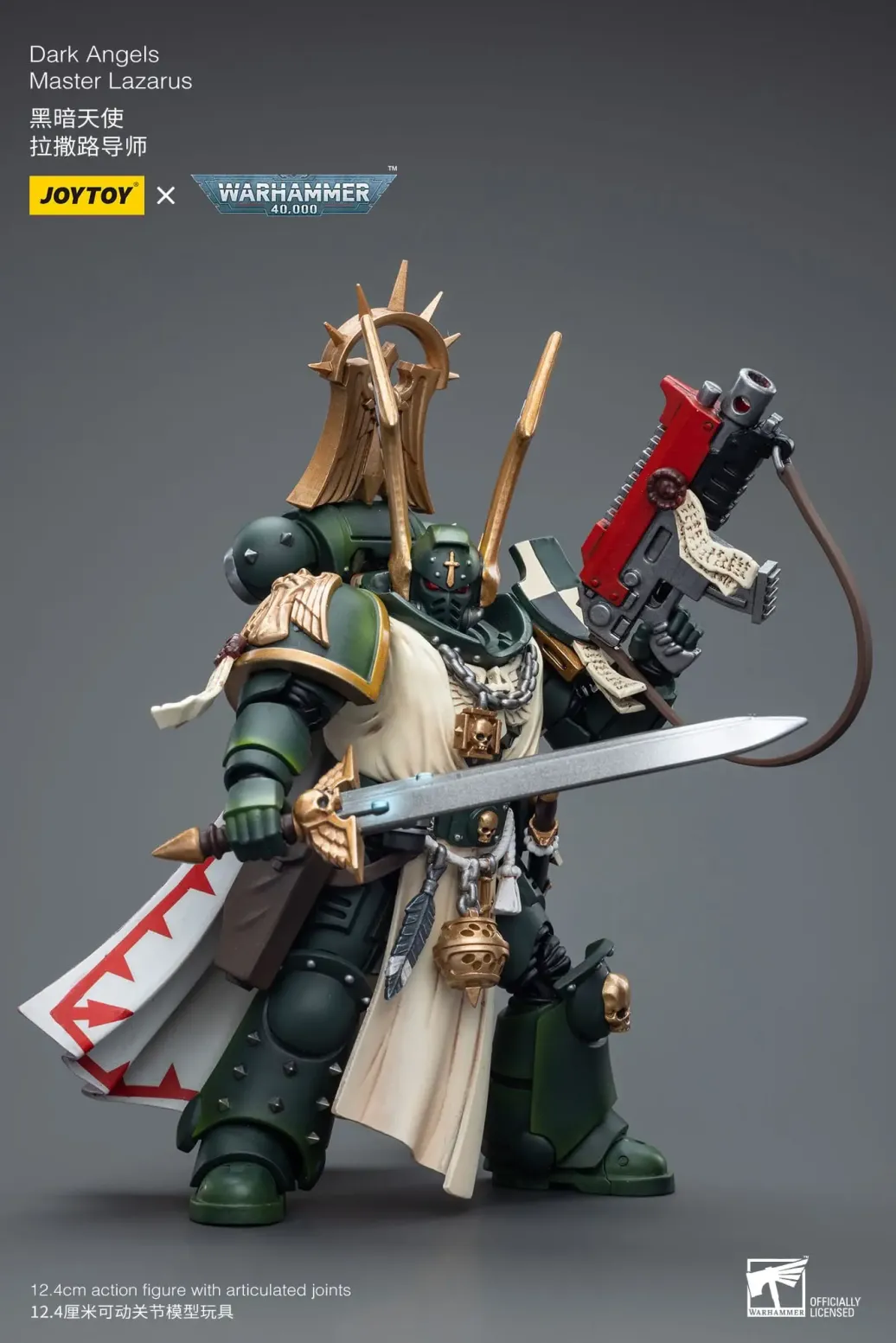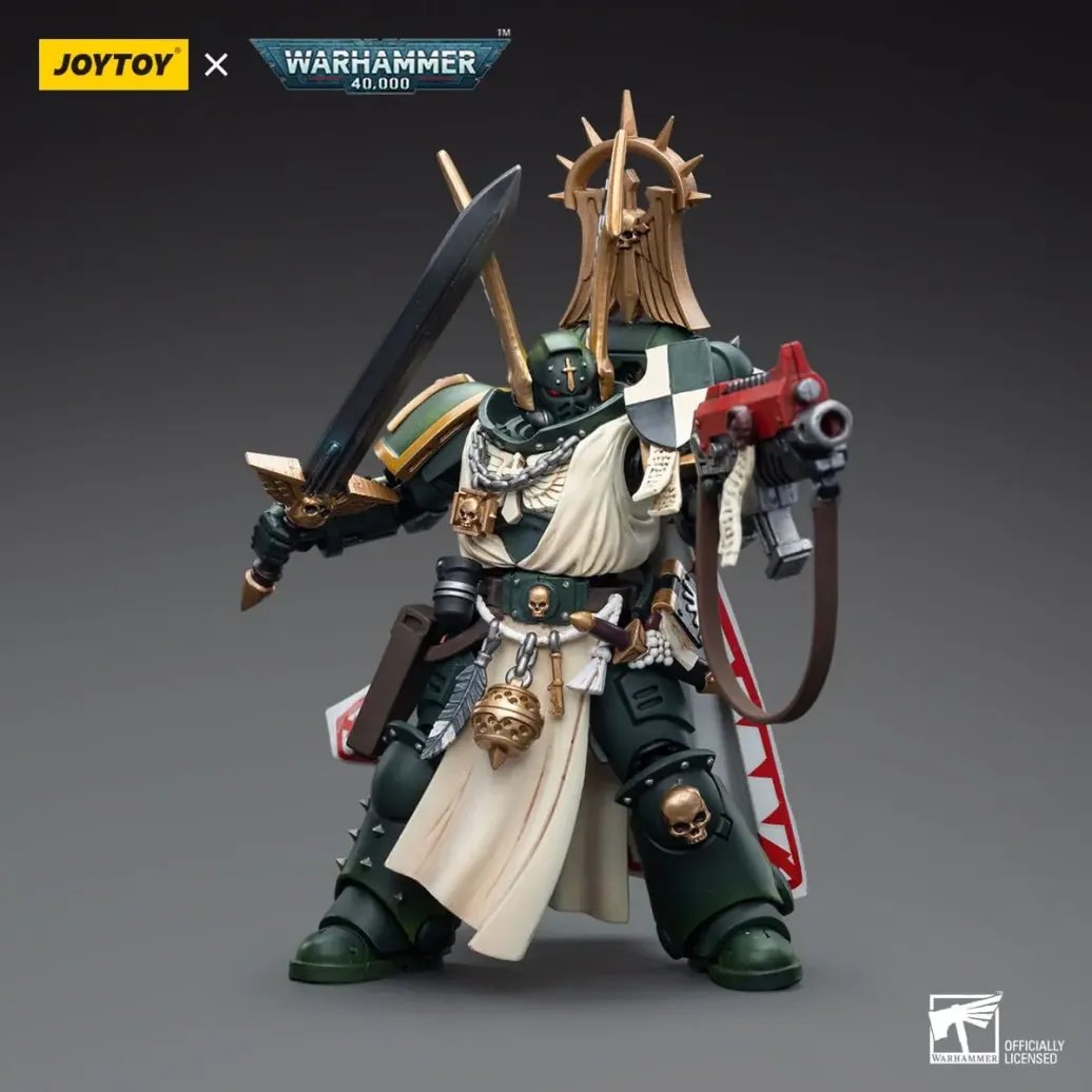 Zum Tabletop-Spiel "Warhammer 40k" kommt diese detailreiche, bewegliche Actionfigur. Sie ist ca. 12 cm groß und wird mit weiterem Zubehör geliefert.