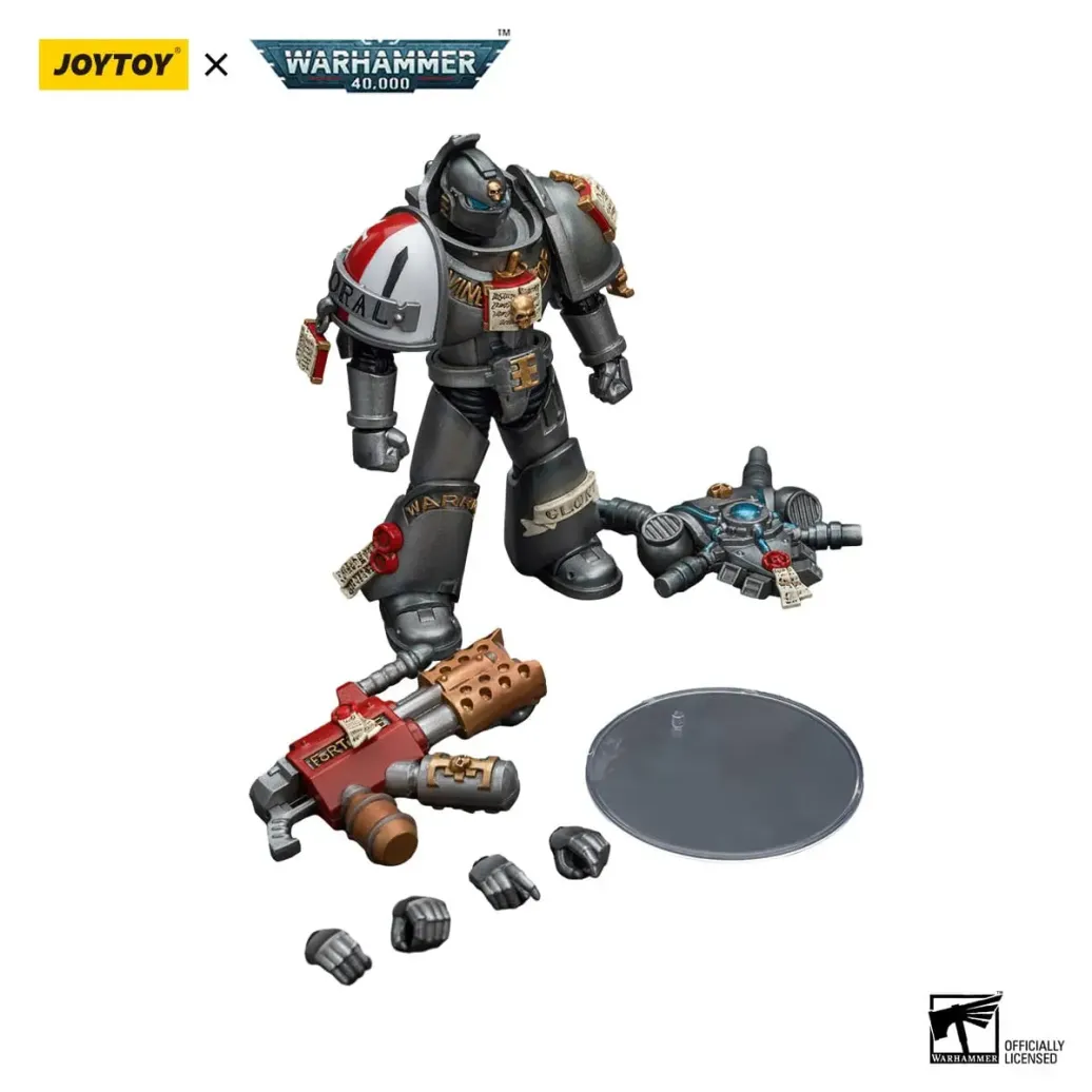 Zum Tabletop-Spiel "Warhammer 40k" kommt diese detailreiche, bewegliche Actionfigur. Sie ist ca. 12 cm groß und wird mit weiterem Zubehör geliefert.