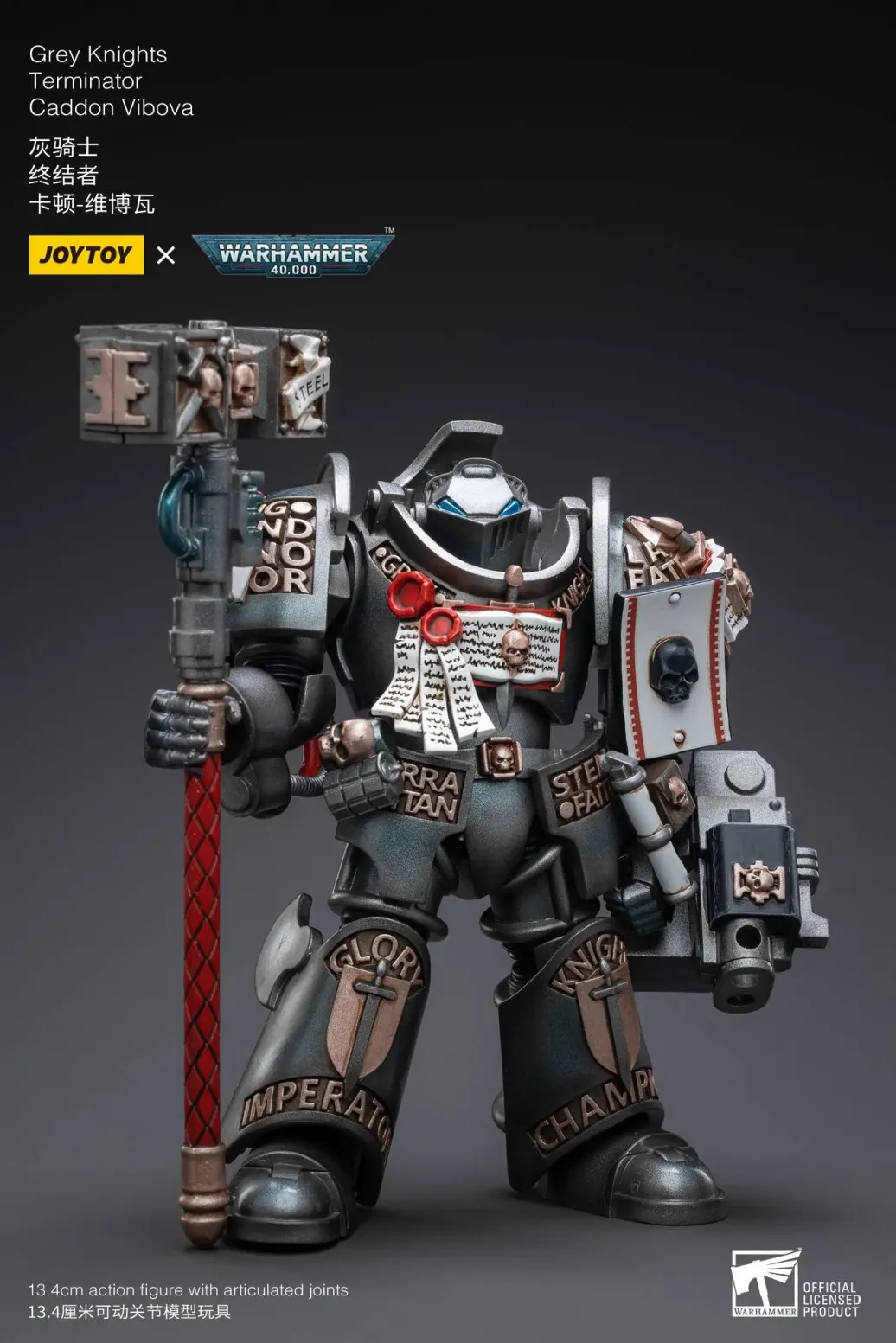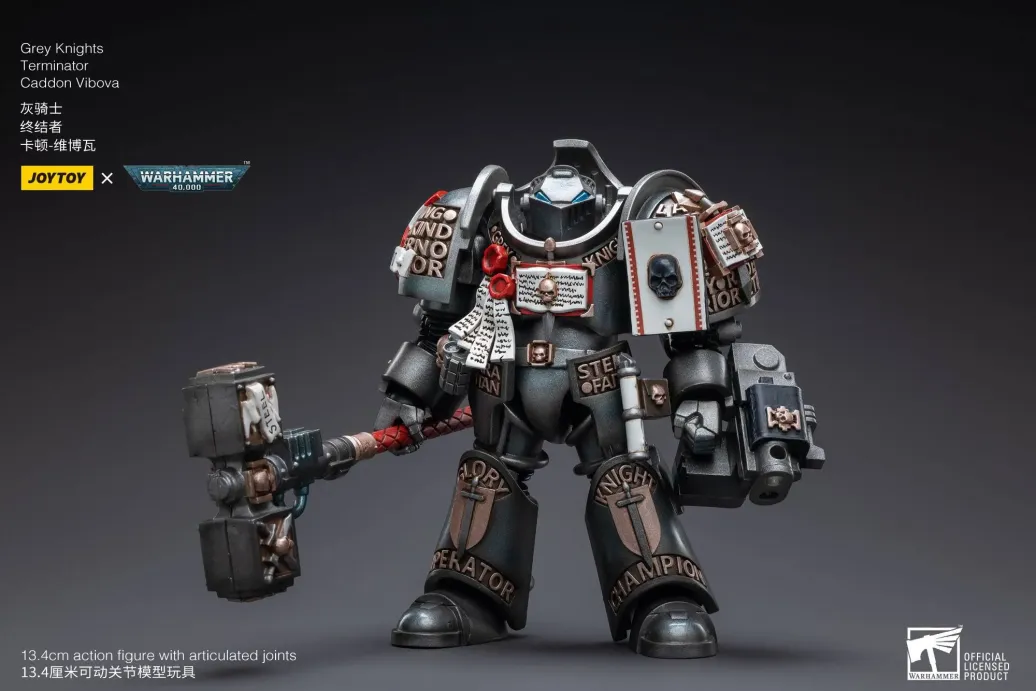 Zum Tabletop-Spiel "Warhammer 40k" kommt diese detailreiche, bewegliche Actionfigur. Sie ist ca. 13 cm groß und wird mit weiterem Zubehör geliefert.