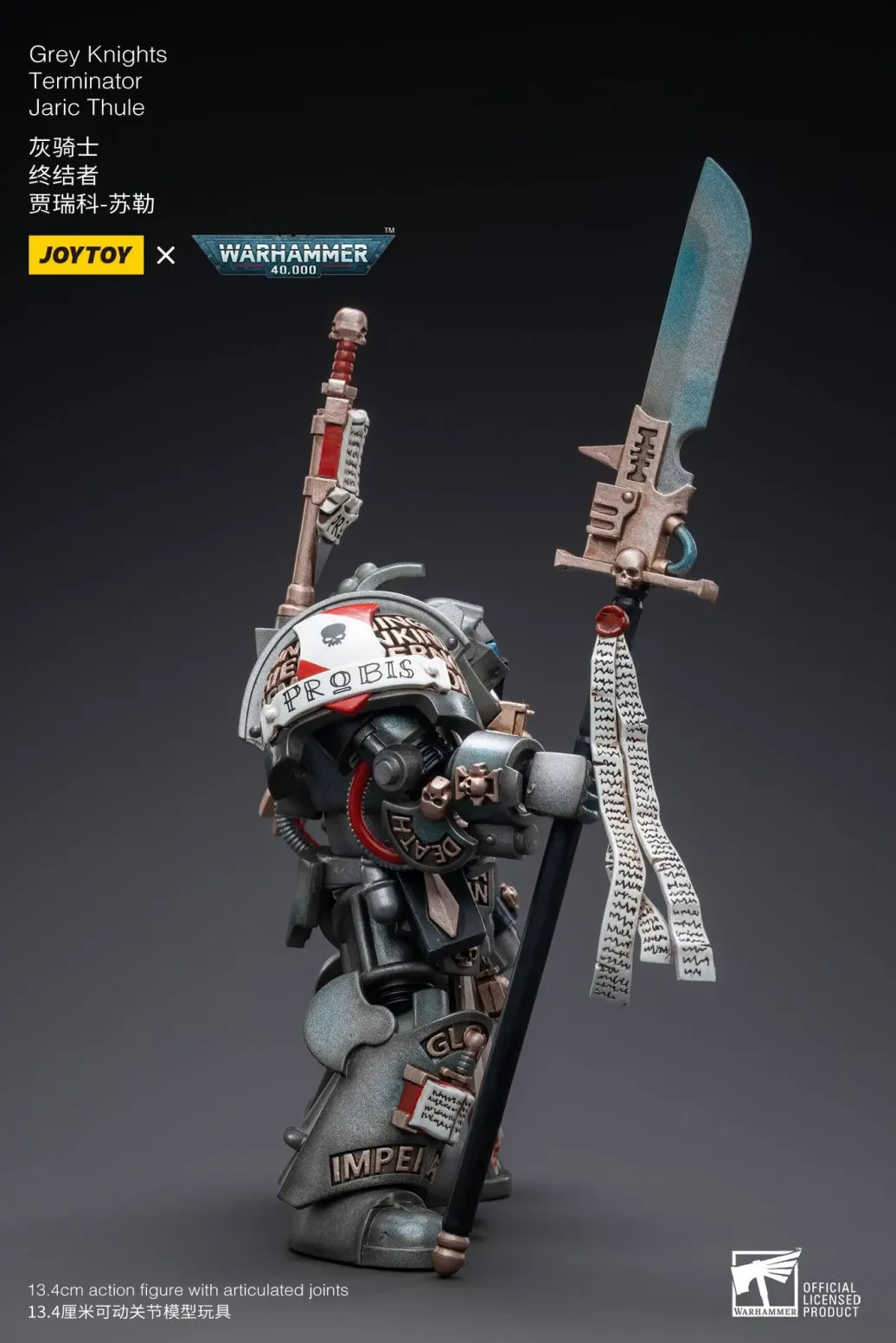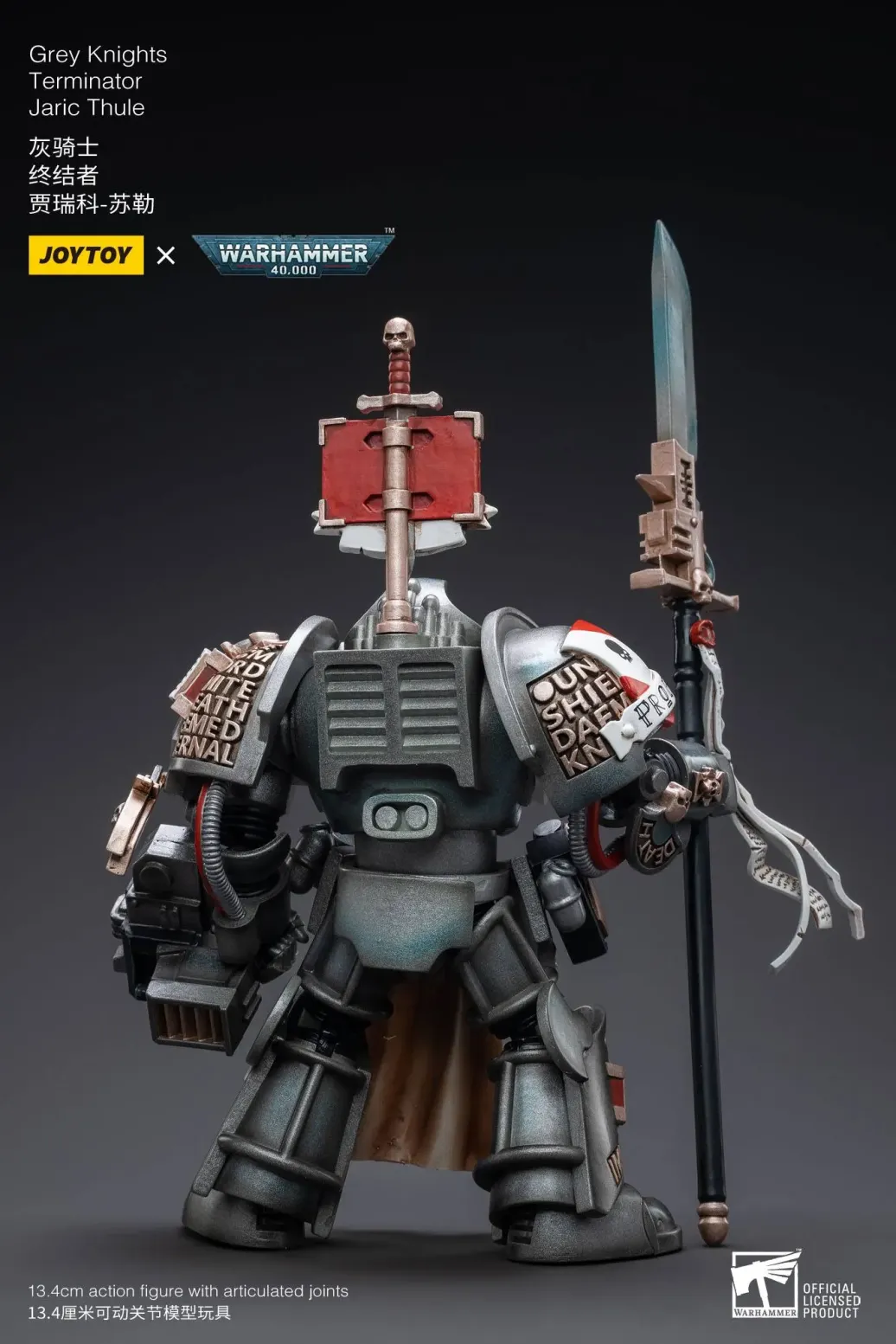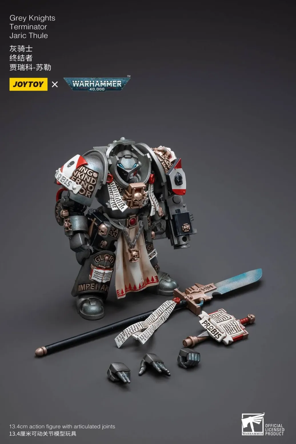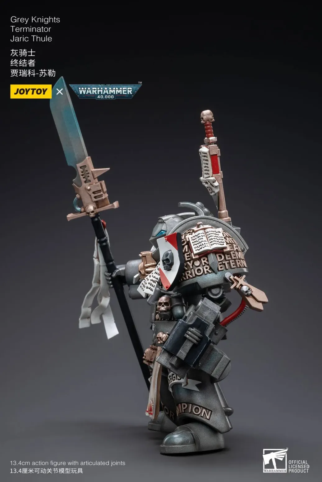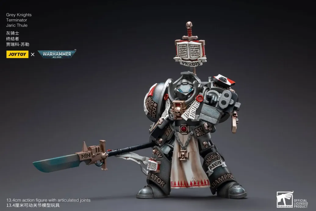 Zum Tabletop-Spiel "Warhammer 40k" kommt diese detailreiche, bewegliche Actionfigur. Sie ist ca. 13 cm groß und wird mit weiterem Zubehör geliefert.