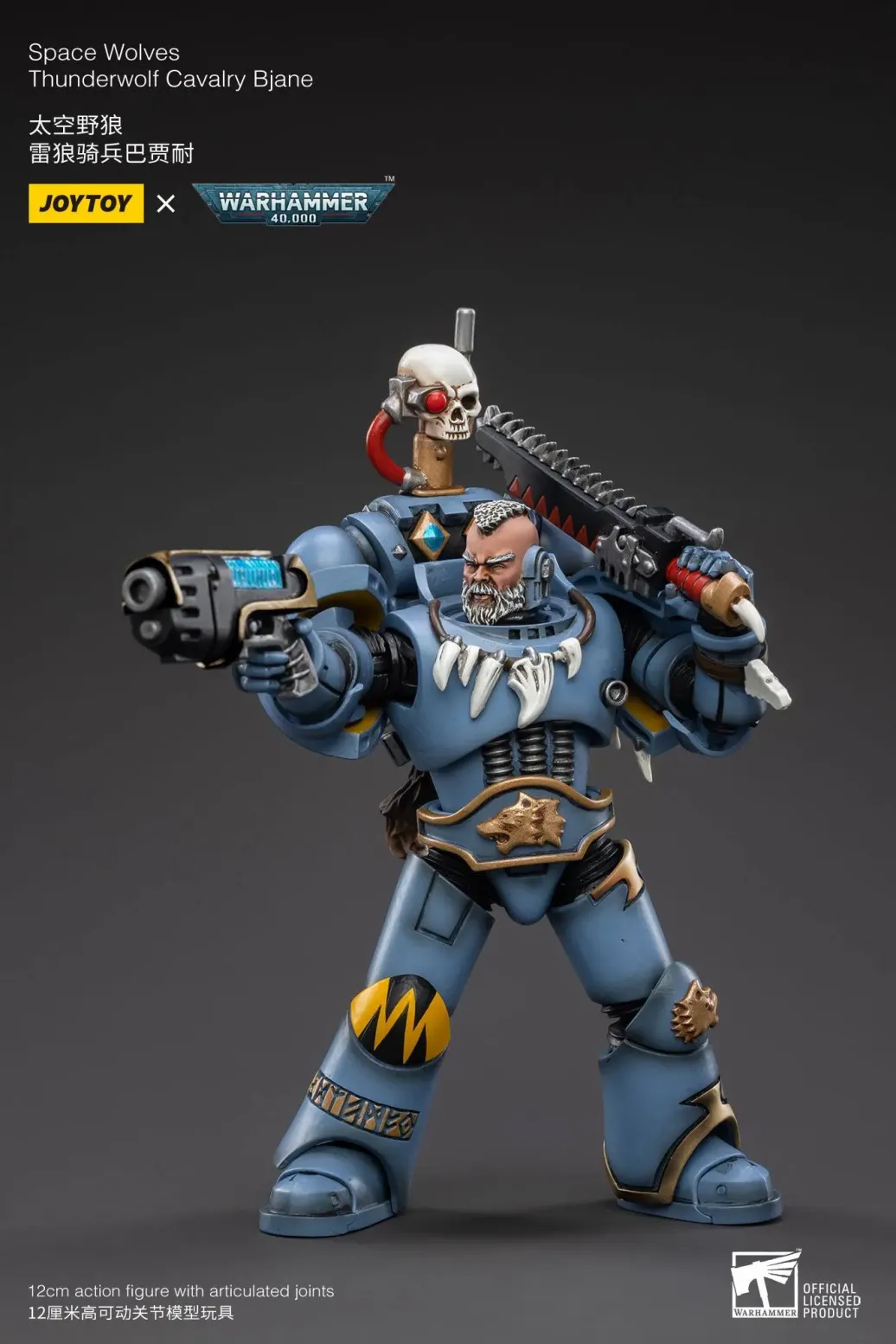 Zum Tabletop-Spiel "Warhammer 40k" kommt diese detailreiche, bewegliche Actionfigur. Sie wird mit einer Wolfsfigur und weiterem Zubehör geliefert.
