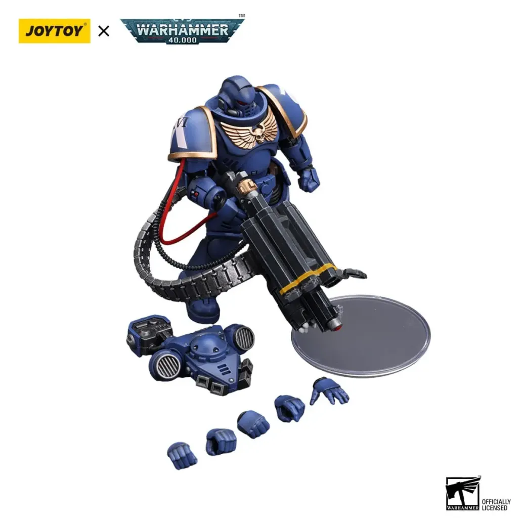 Zum Tabletop-Spiel "Warhammer 40k" kommt diese detailreiche, bewegliche Actionfigur. Sie ist ca. 12 cm groß und wird mit weiterem Zubehör geliefert.
