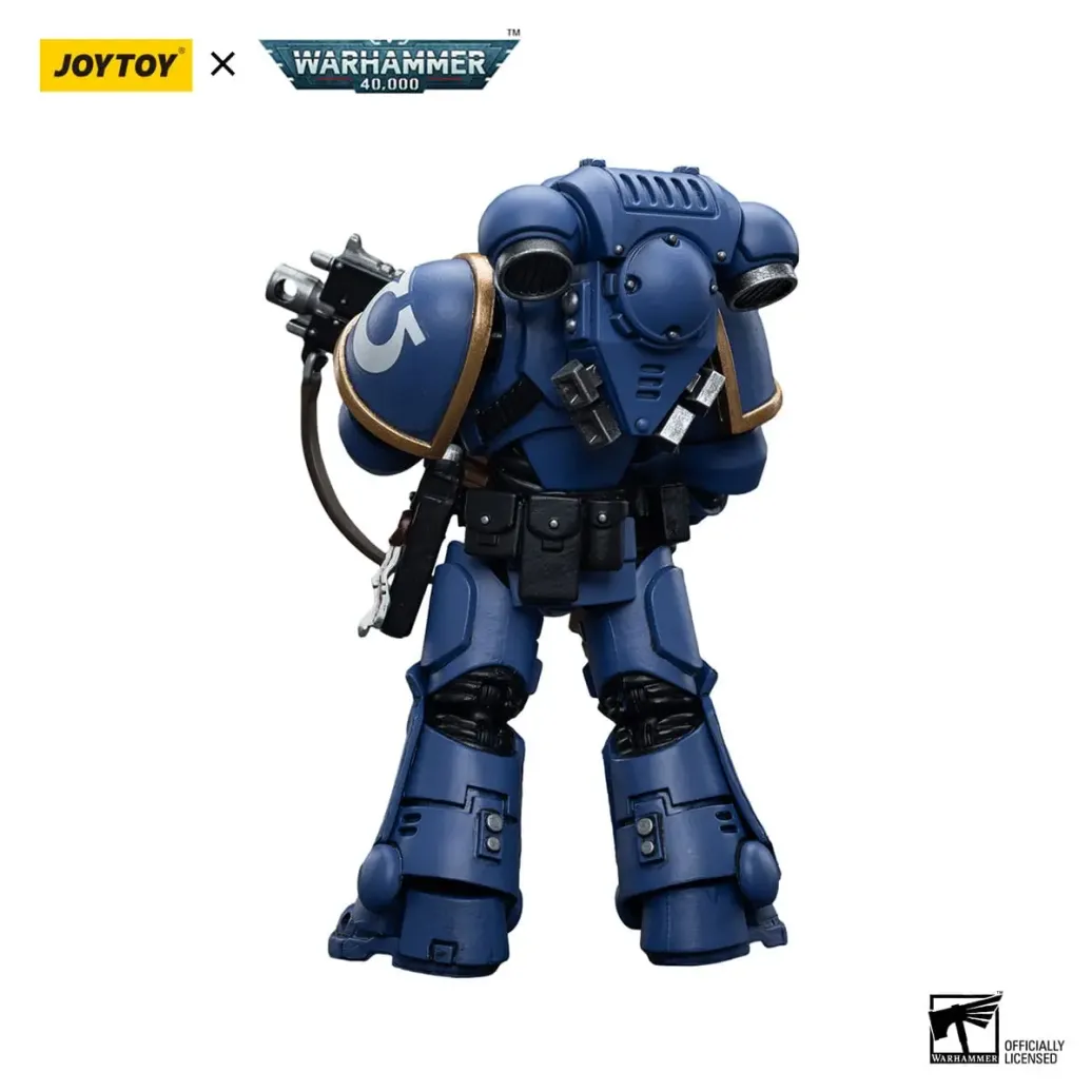 Zum Tabletop-Spiel "Warhammer 40k" kommt diese detailreiche, bewegliche Actionfigur. Sie ist ca. 12 cm groß und wird mit weiterem Zubehör geliefert.