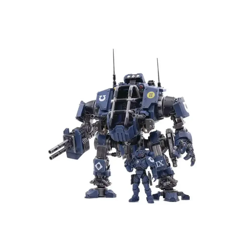 Zum Tabletop-Spiel "Warhammer 40k" kommt diese detailreiche, bewegliche Actionfigur. Sie ist ca. 22 cm groß und wird mit weiterem Zubehör geliefert. Eine 8 cm große Pilotenfigur ist ebenfalls enthalten.