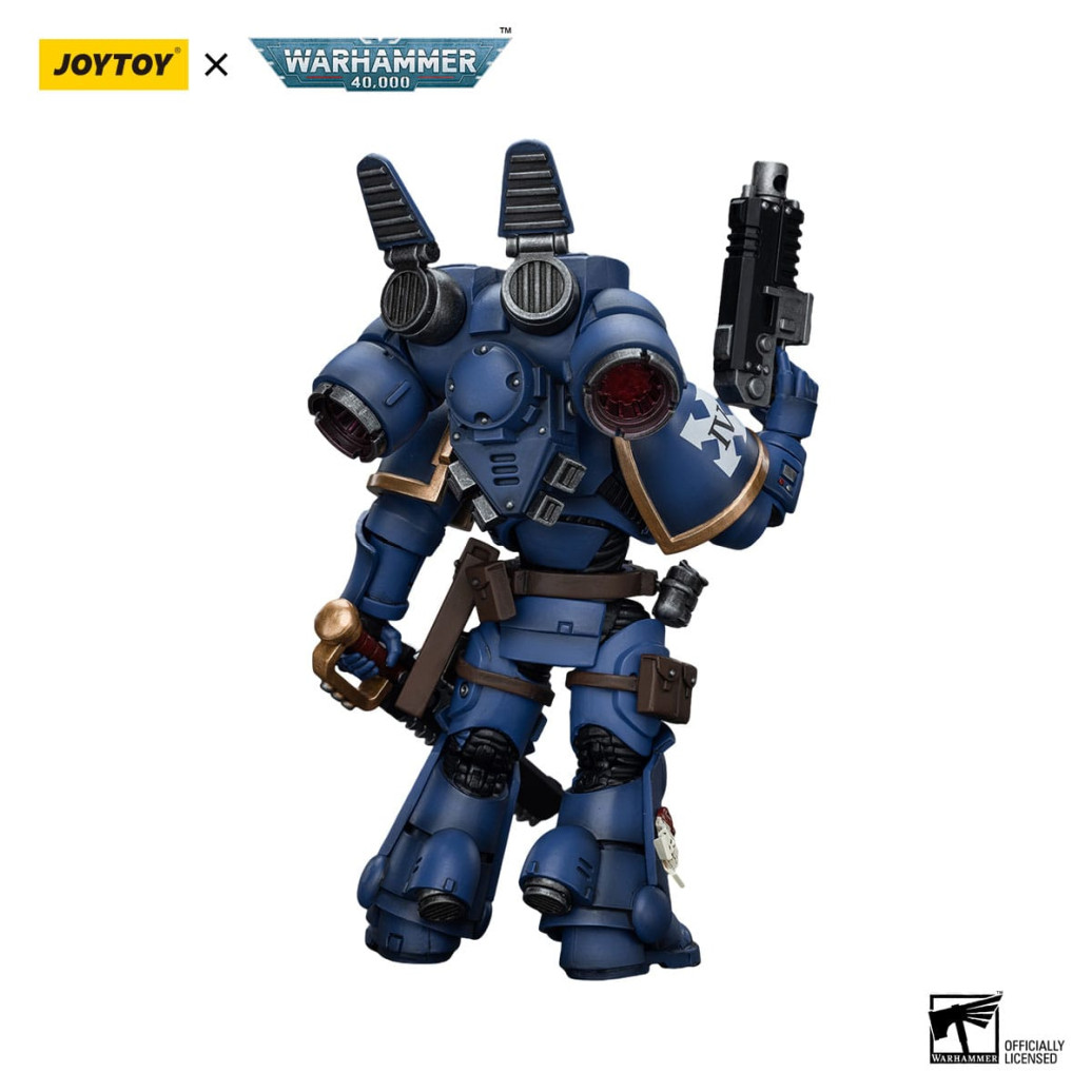 Zum Tabletop-Spiel "Warhammer 40k" kommt diese detailreiche, bewegliche Actionfigur. Sie ist ca. 12 cm groß und wird mit weiterem Zubehör geliefert.