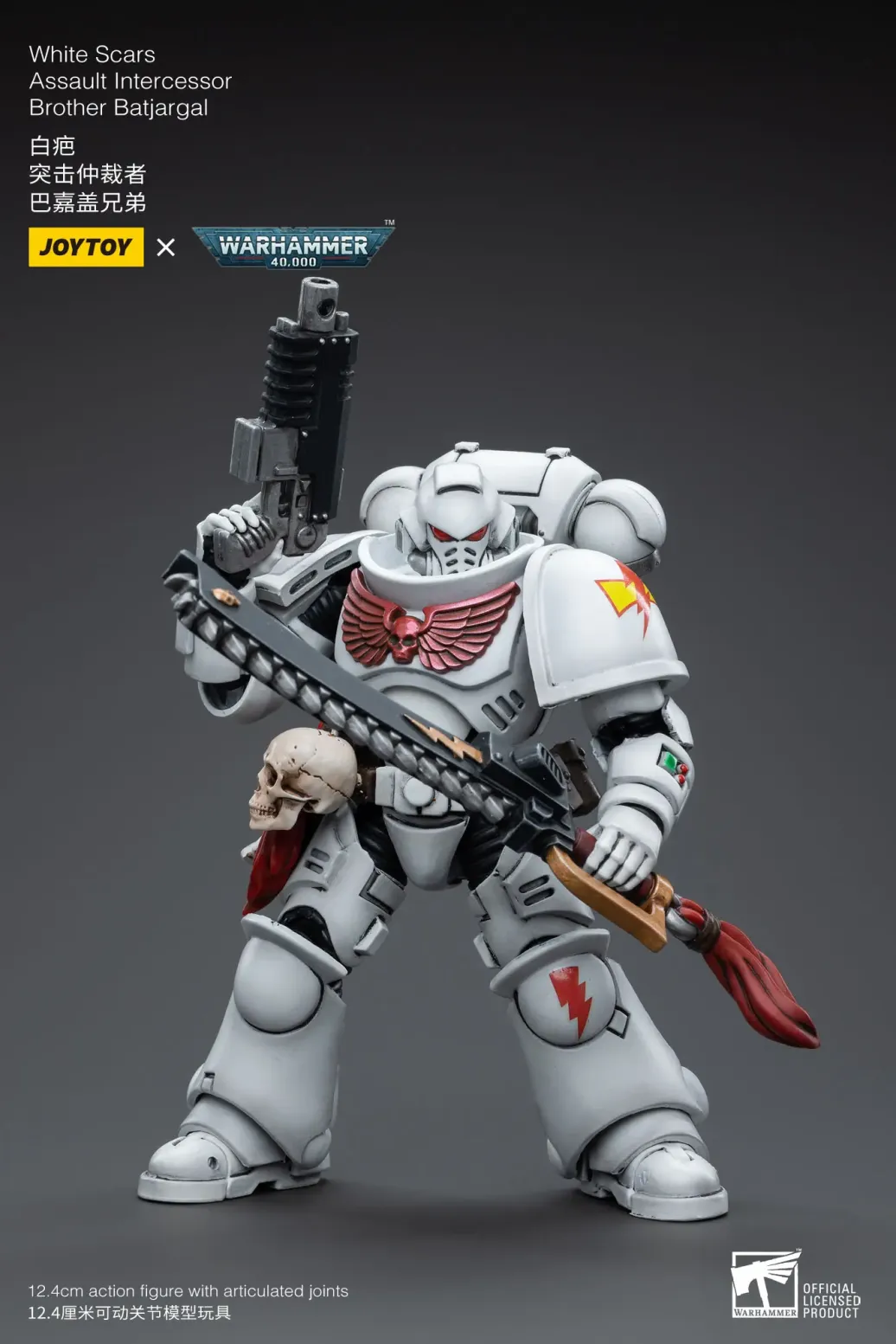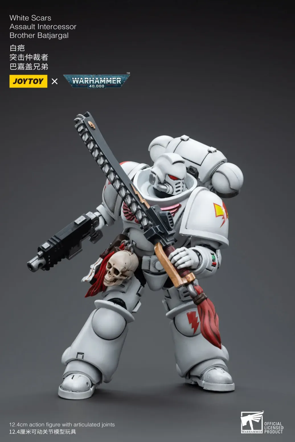 Zum Tabletop-Spiel "Warhammer 40k" kommt diese detailreiche, bewegliche Actionfigur. Sie ist ca. 12 cm groß und wird mit weiterem Zubehör geliefert.