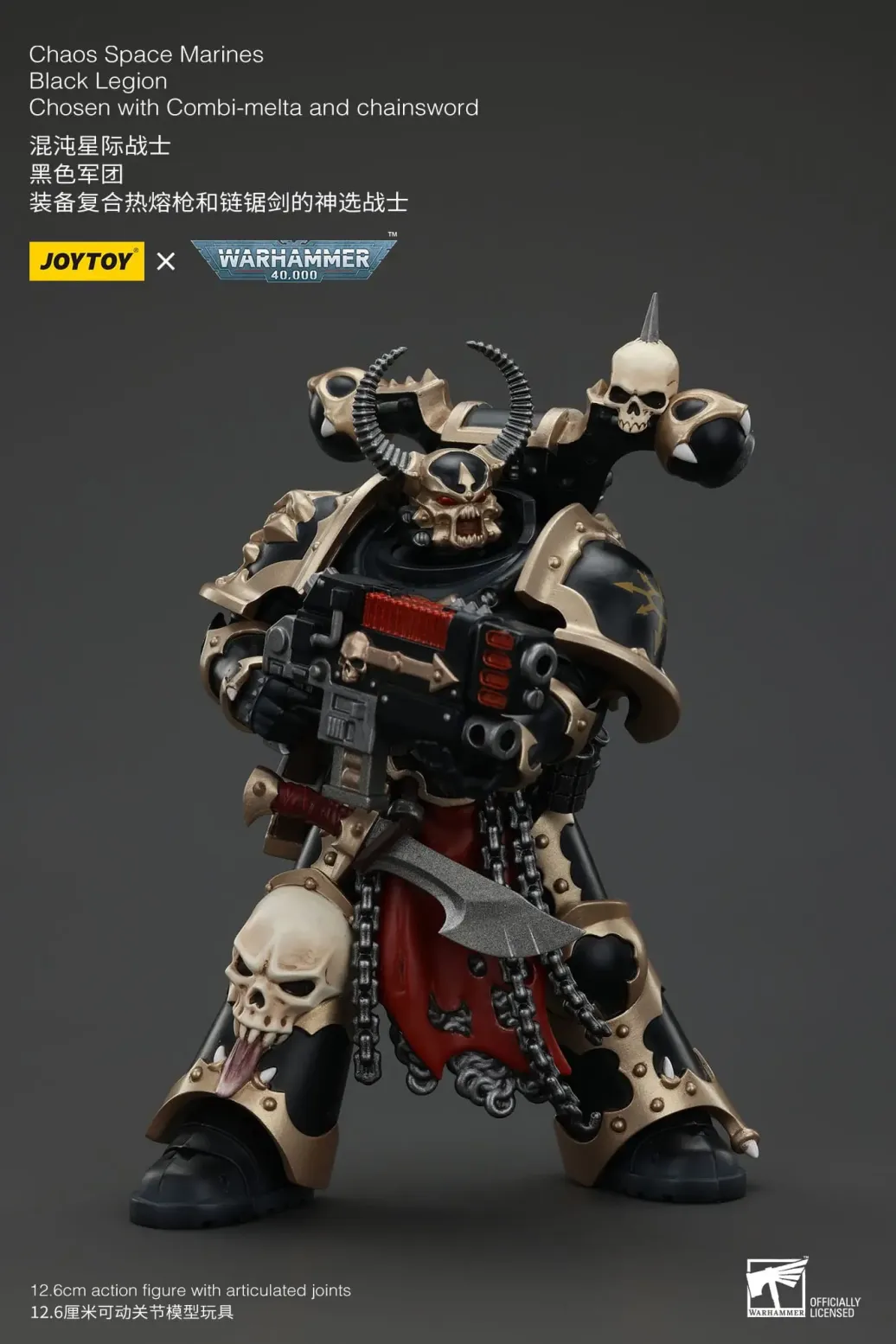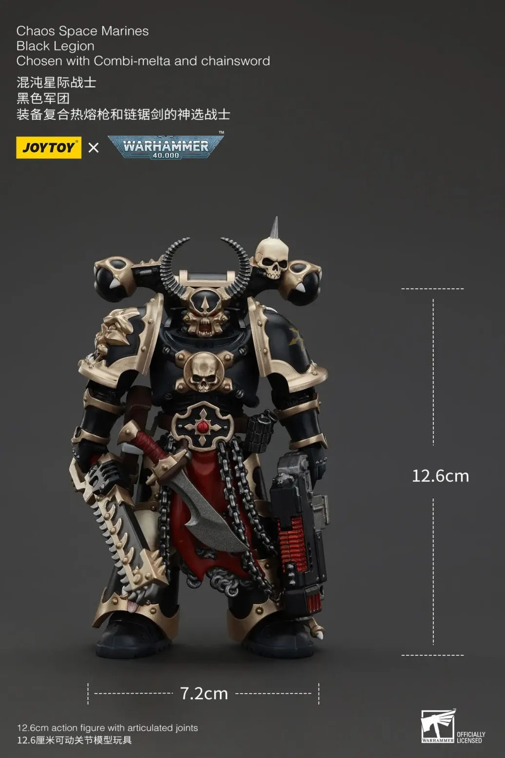 Zum Tabletop-Spiel "Warhammer 40k" kommt diese detailreiche, bewegliche Actionfigur. Sie ist ca. 20 cm groß und wird mit weiterem Zubehör geliefert.