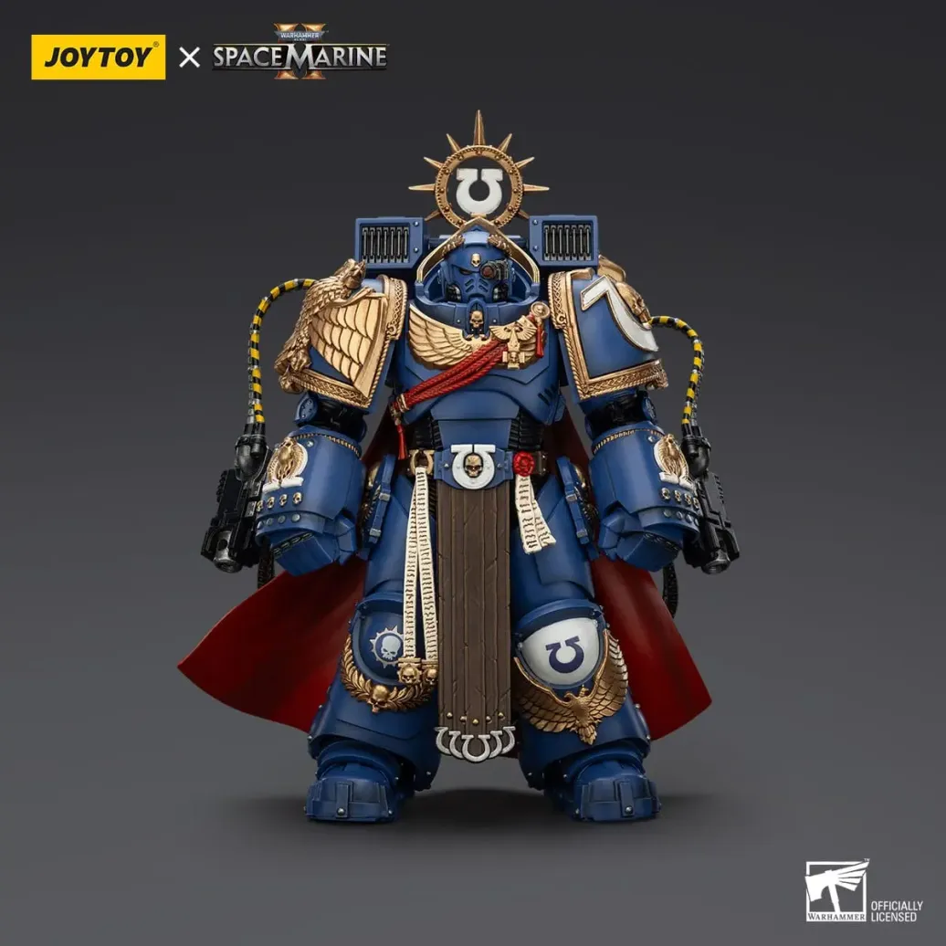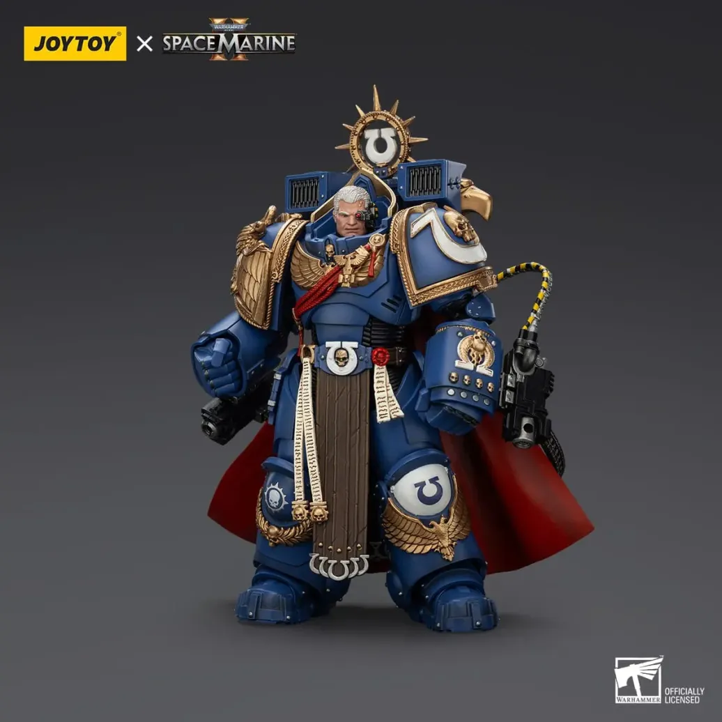 Zum Tabletop-Spiel "Warhammer 40k" kommt diese detailreiche, bewegliche Actionfigur. Sie ist ca. 20 cm groß und wird mit weiterem Zubehör geliefert.